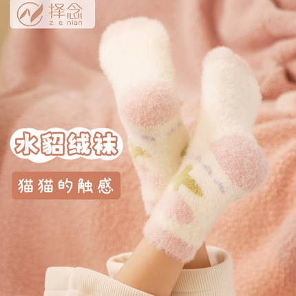 水貂绒加厚秋冬季保暖袜子女中筒