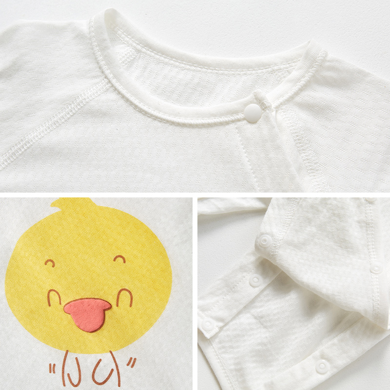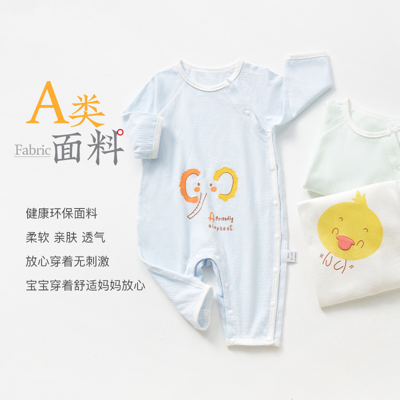 宝宝春夏薄款连体衣纯棉斜襟按扣