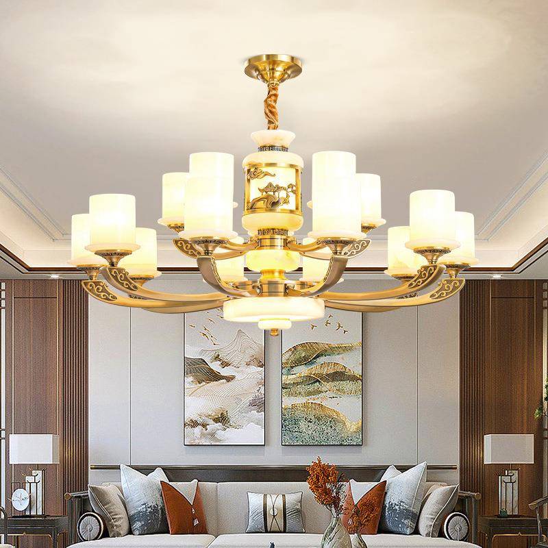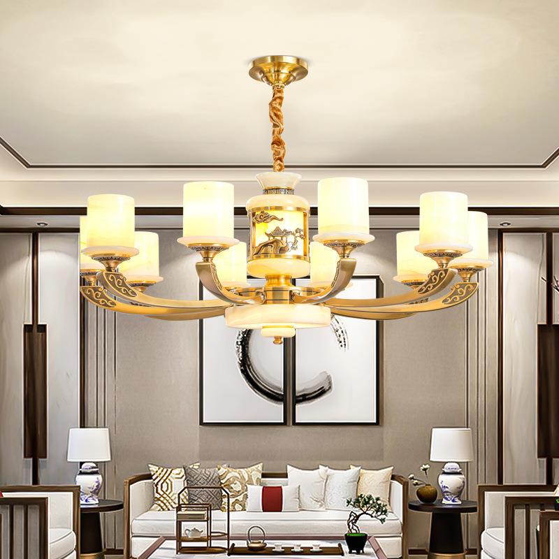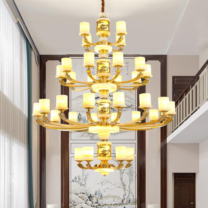 新中式全铜玉石客厅吊灯大气中国风别墅复式大厅自建房多层大灯具
