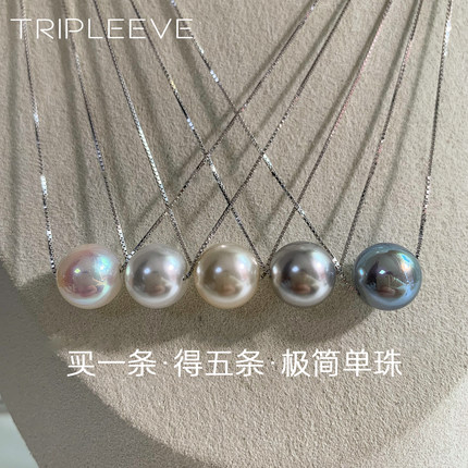AKOYA极光天女海水珍珠项链铂金灰极光真多麻人工澳白纯银路路通