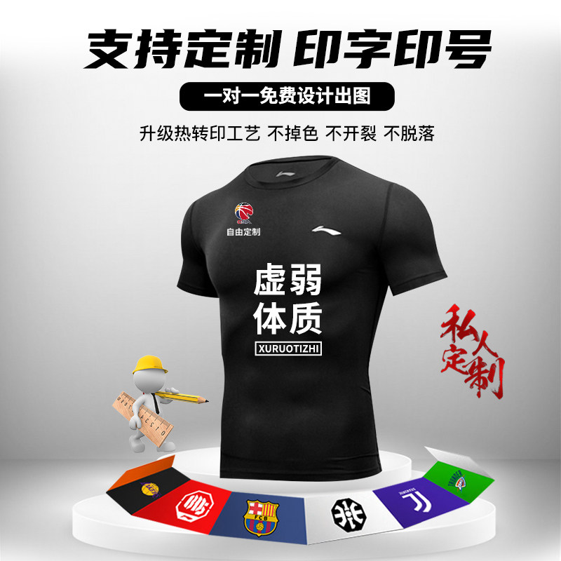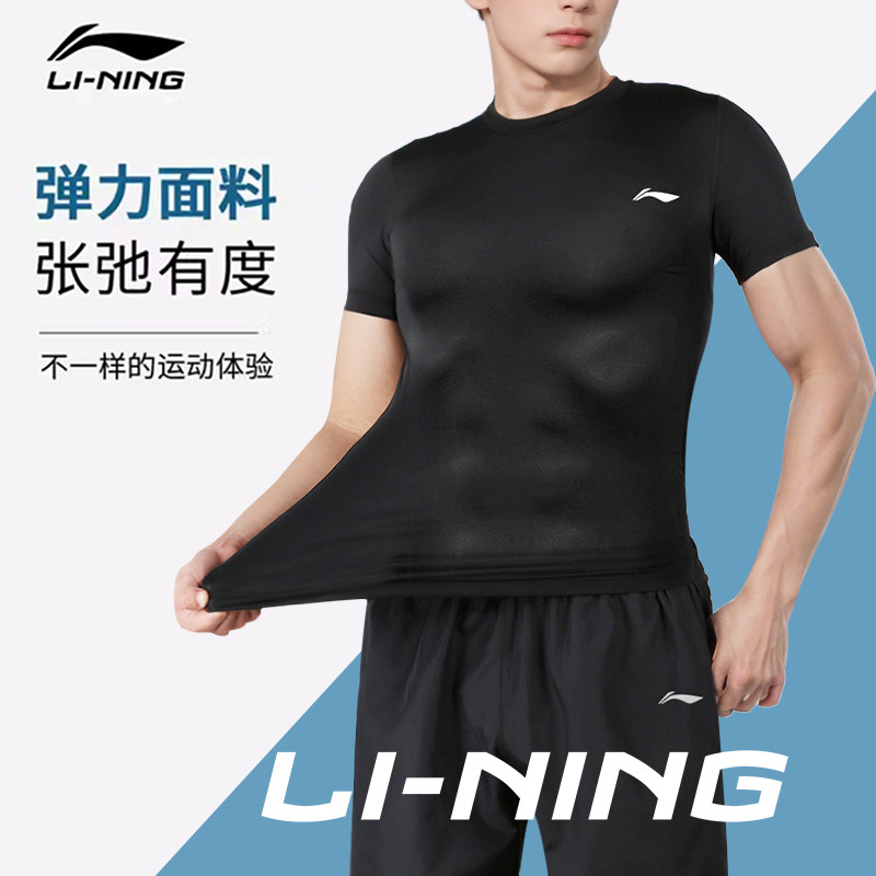 李宁健身衣男短袖运动紧身衣训练跑步速干压缩健身服透气篮球上衣