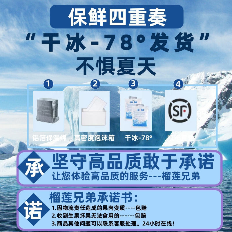 泰国冷冻榴莲肉新鲜速冻无核3kg进口金枕头榴莲果肉6斤商顺丰包邮