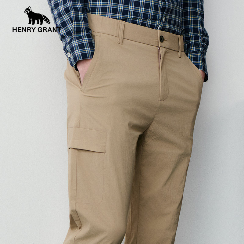 亨利格兰小熊猫春夏新品男百搭直筒中腰卡其色休闲裤显高弹力长裤