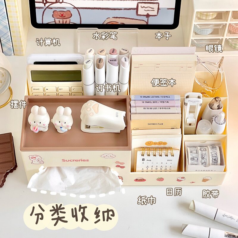 桌面化妆品收纳盒梳妆台纸巾盒抽纸盒客厅茶几遥控器办公室置物架