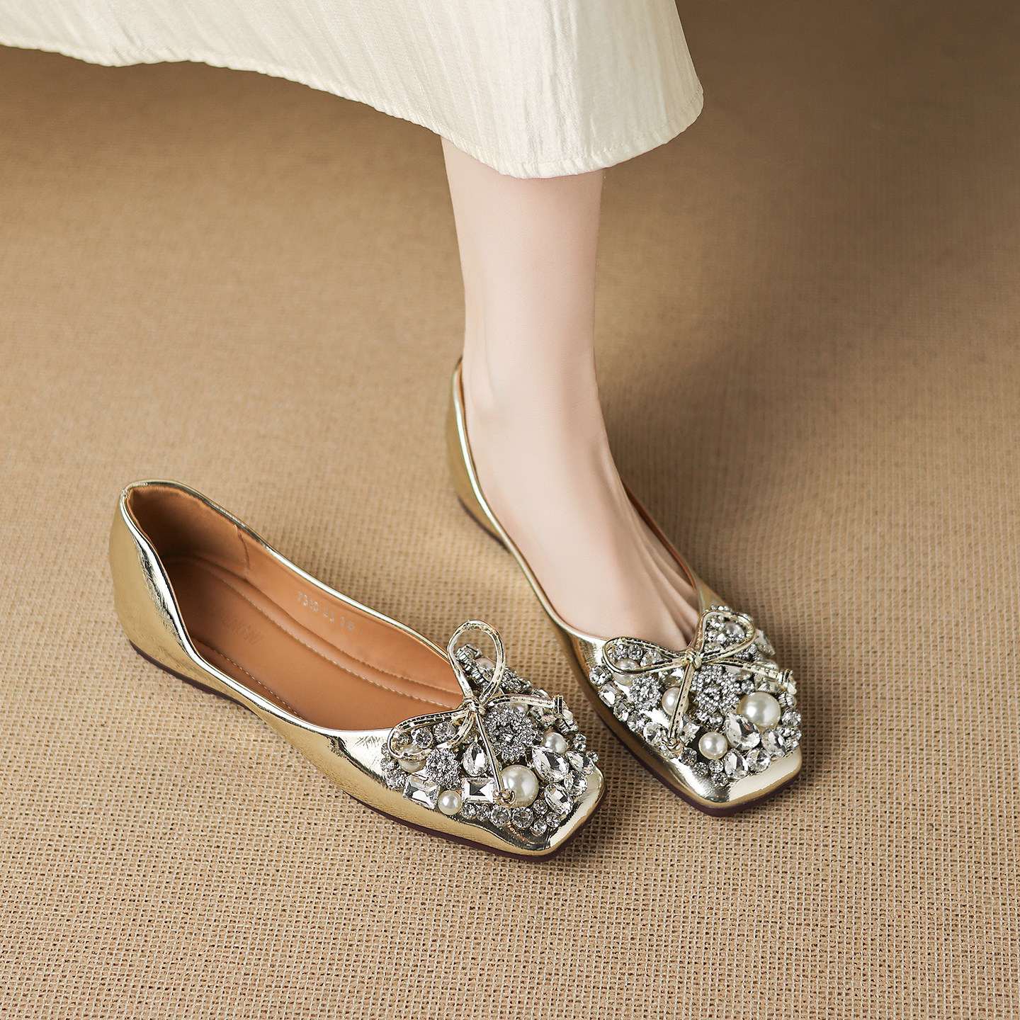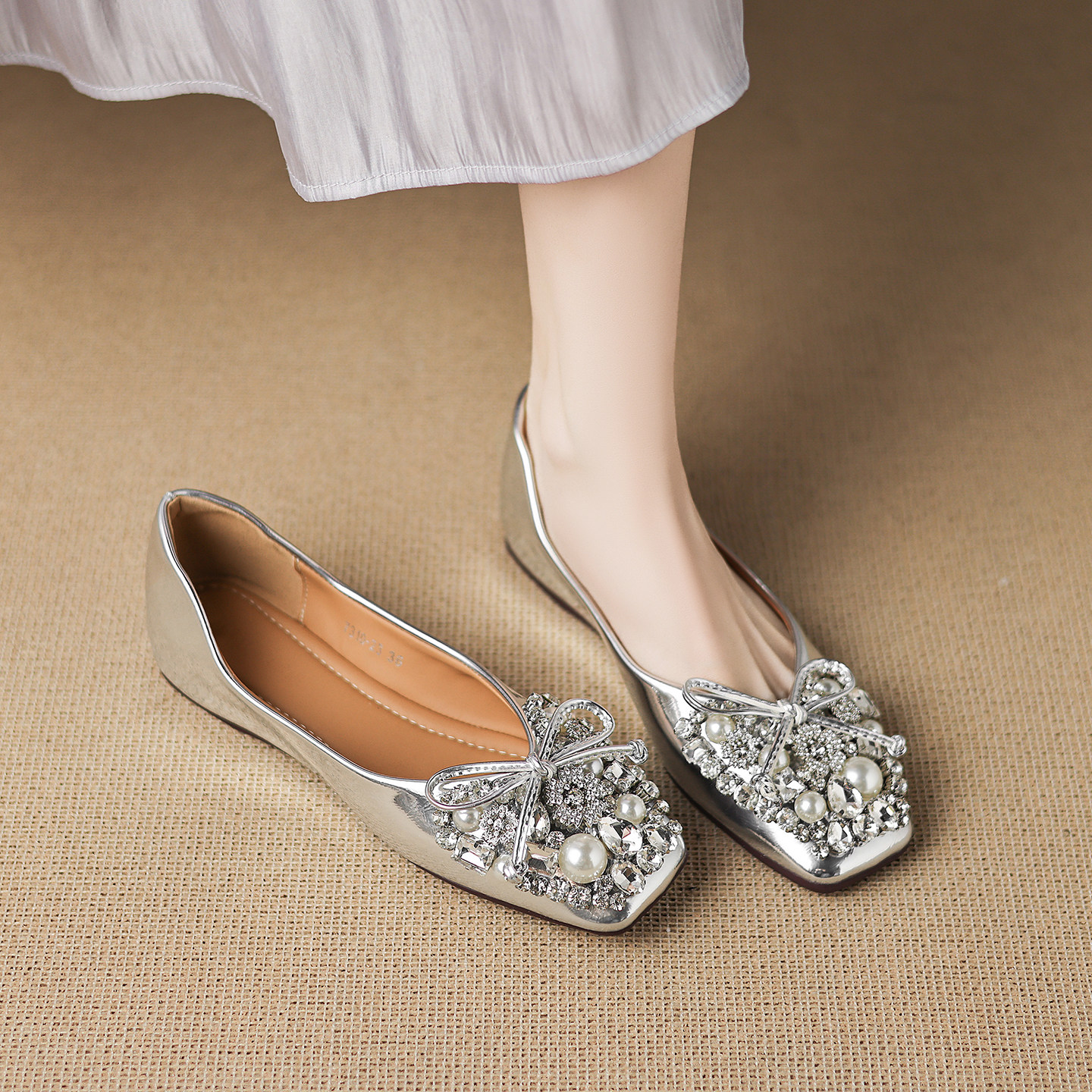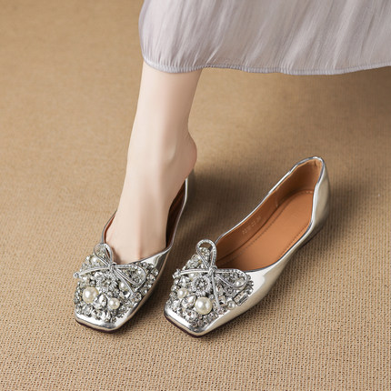 法式复古银色平底鞋2026新款春浅口单鞋女不累脚一脚蹬女鞋配裙子