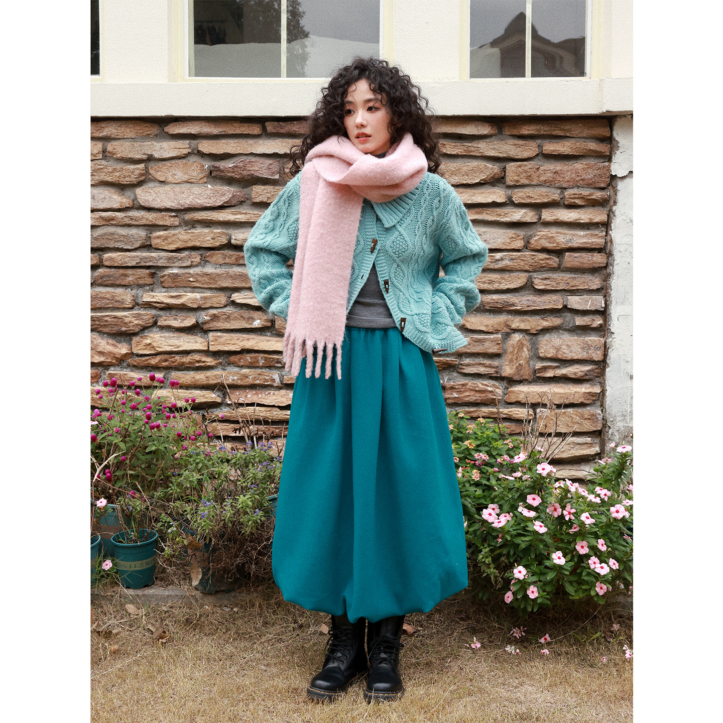 化学少女「绒绒旧时光」羊毛呢花苞半身长裙女秋冬百搭修饰腿型