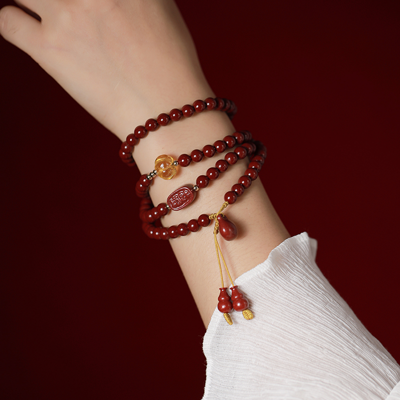 湘西高含量朱砂紫金砂108珠多圈佛珠念珠手串葫芦福袋手链女礼物