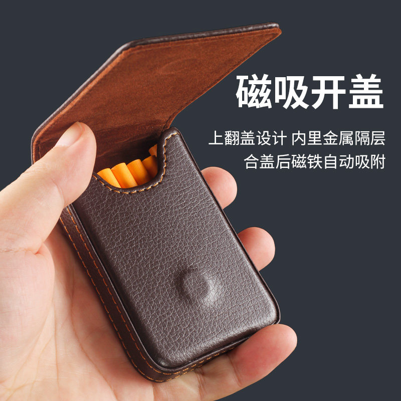 商务男士7支装中粗两用磁吸烟盒PU皮多功能男士便携控烟收纳小巧