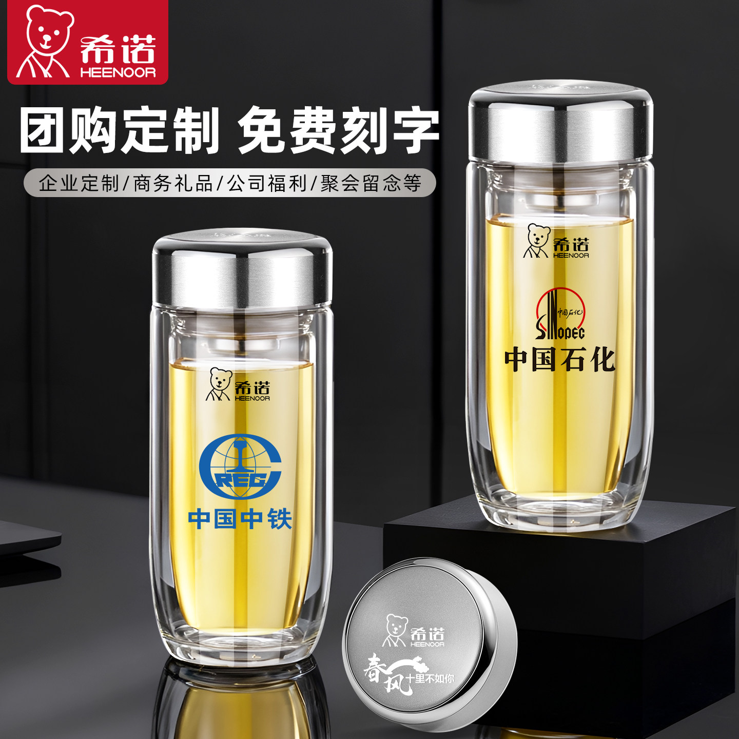 希诺玻璃杯双层便携杯子大容量茶水分离鹅蛋泡茶杯男女士办公水杯