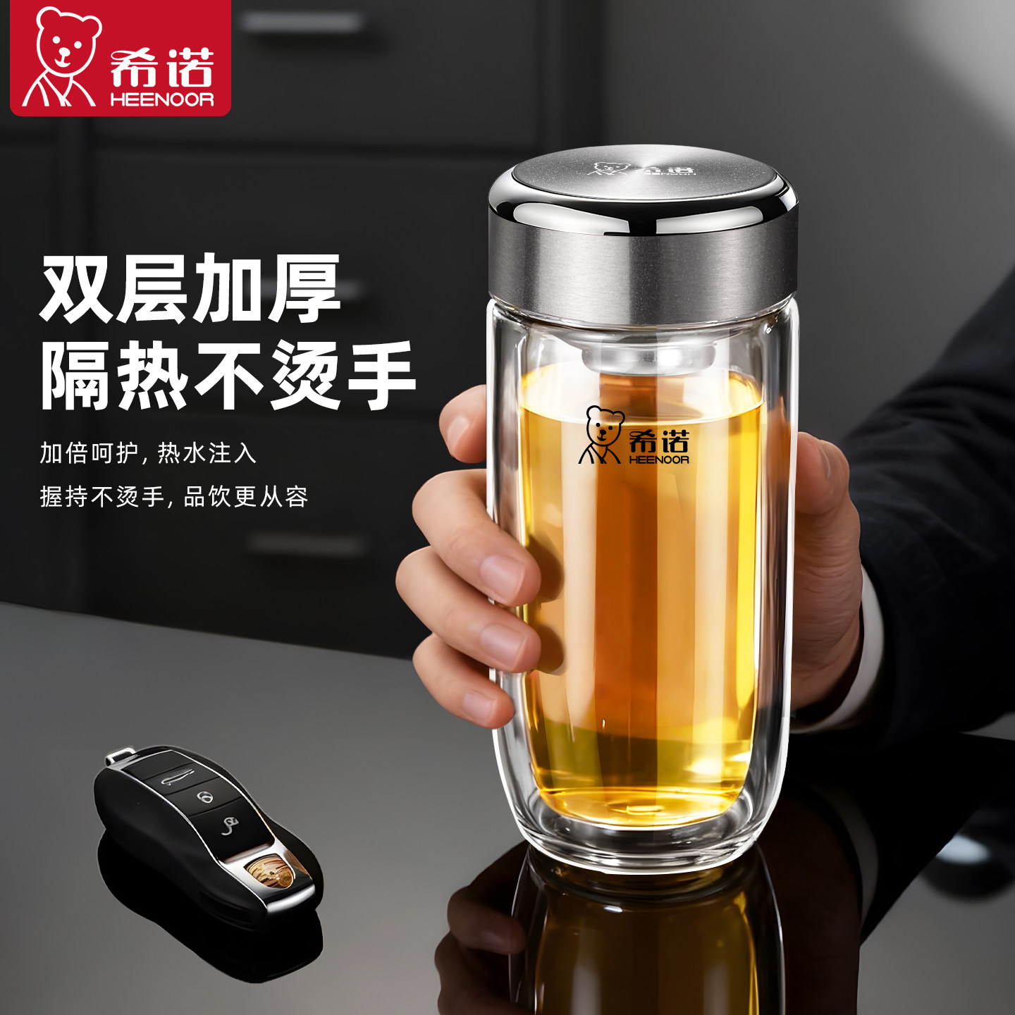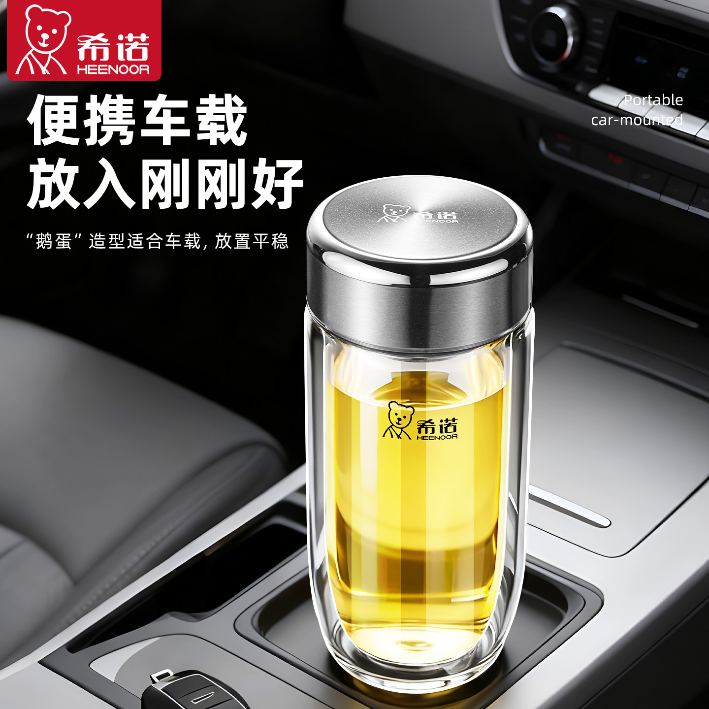 希诺双层玻璃杯车载杯子加厚水杯