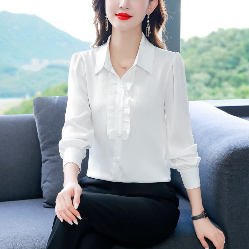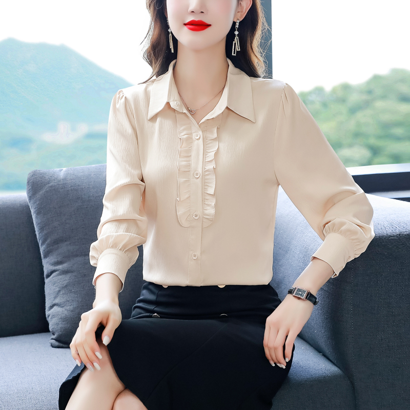 高档真丝女士衬衫长袖雪纺小衫春秋洋气外穿衬衣桑蚕丝遮肚子上衣