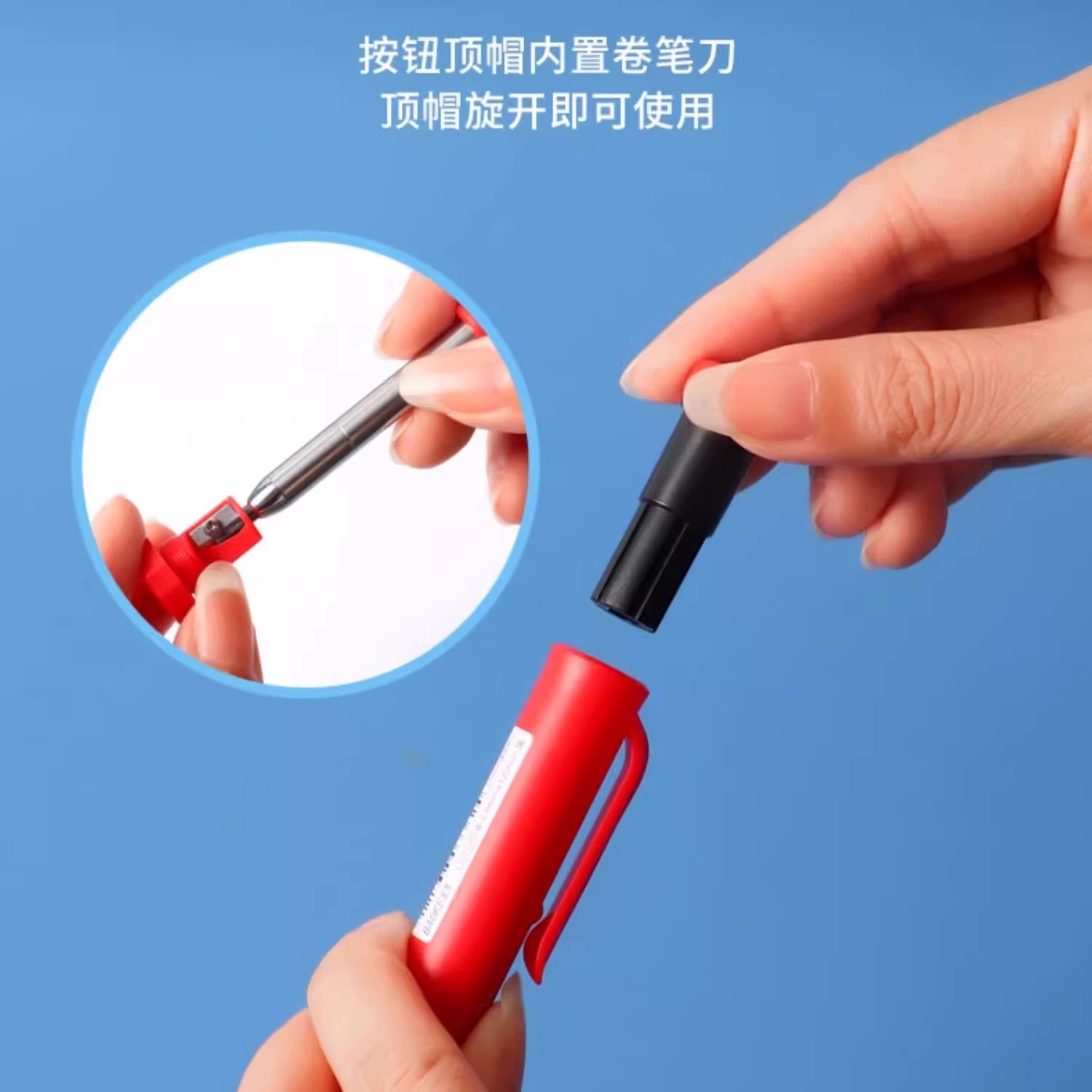 宝克工程木工铅笔2.8mm自动铅笔长头木工笔深孔标记笔工程制图铅笔金属打孔木工划线笔红黄黑笔芯 自带削笔器