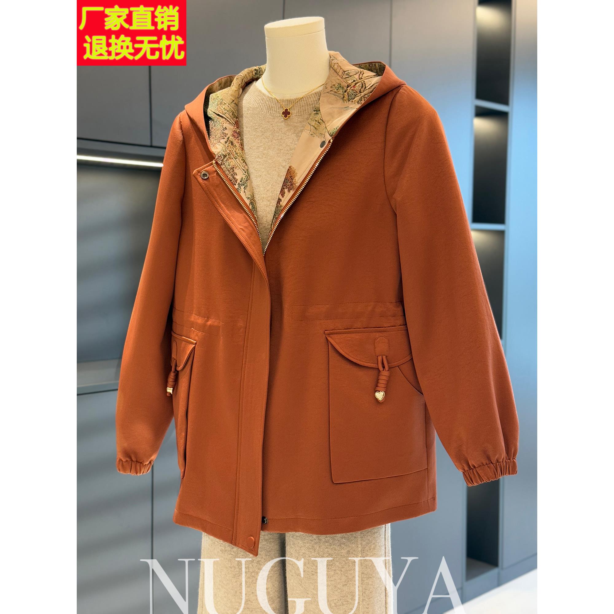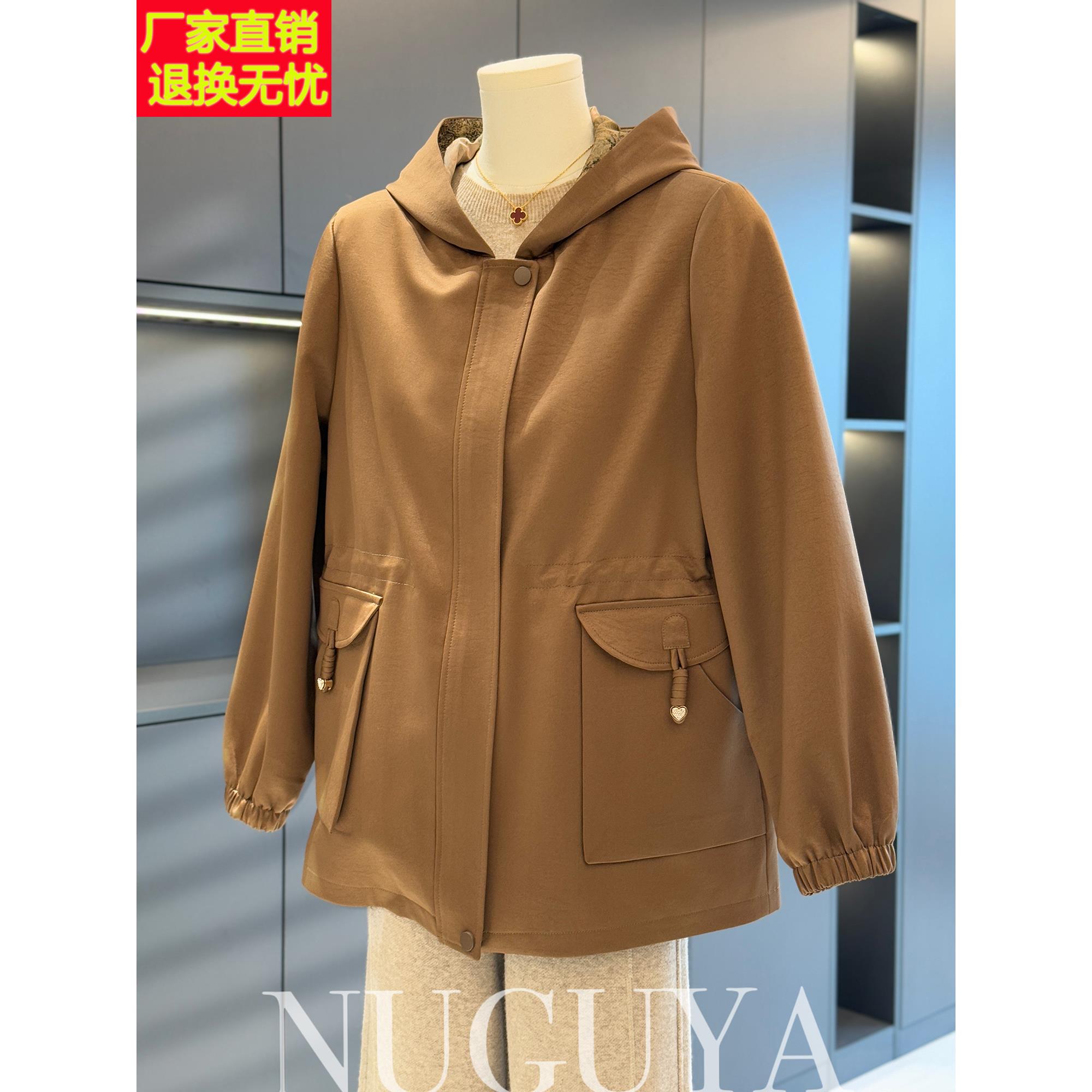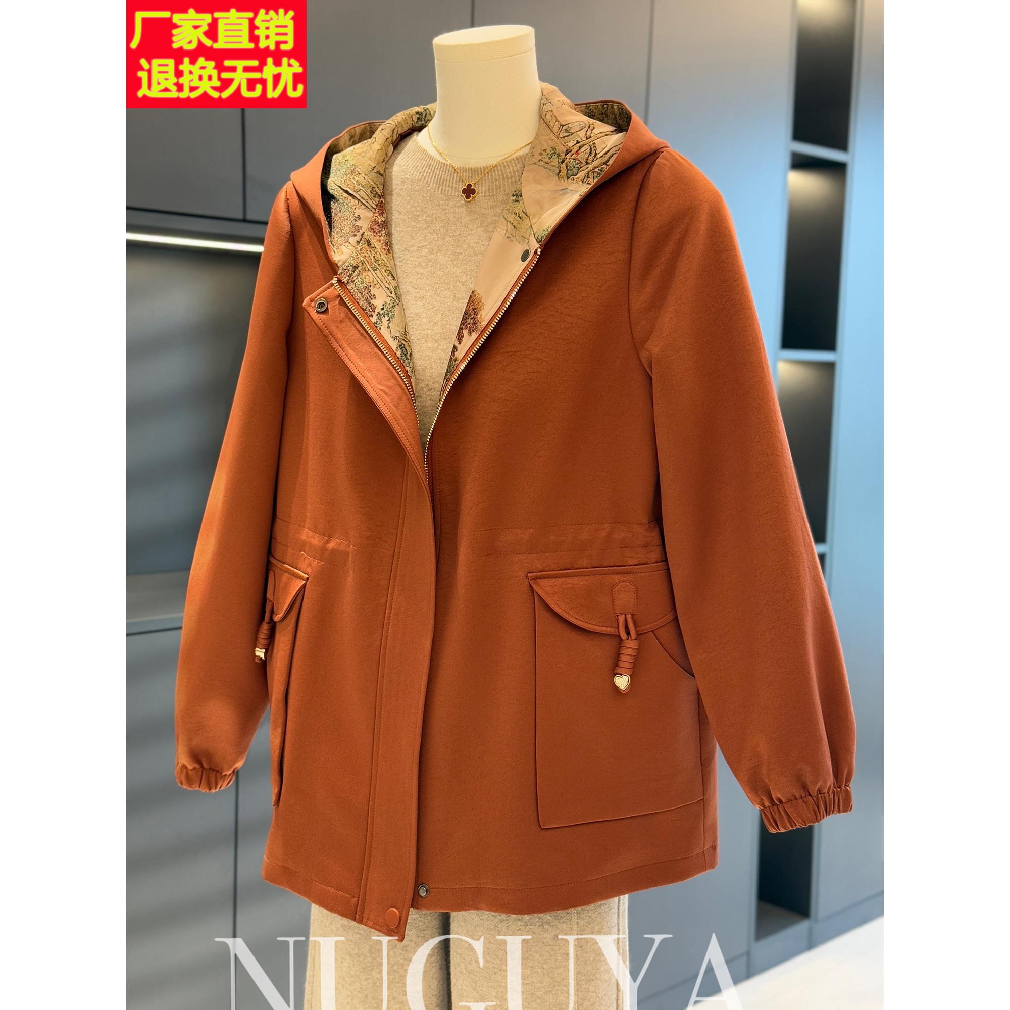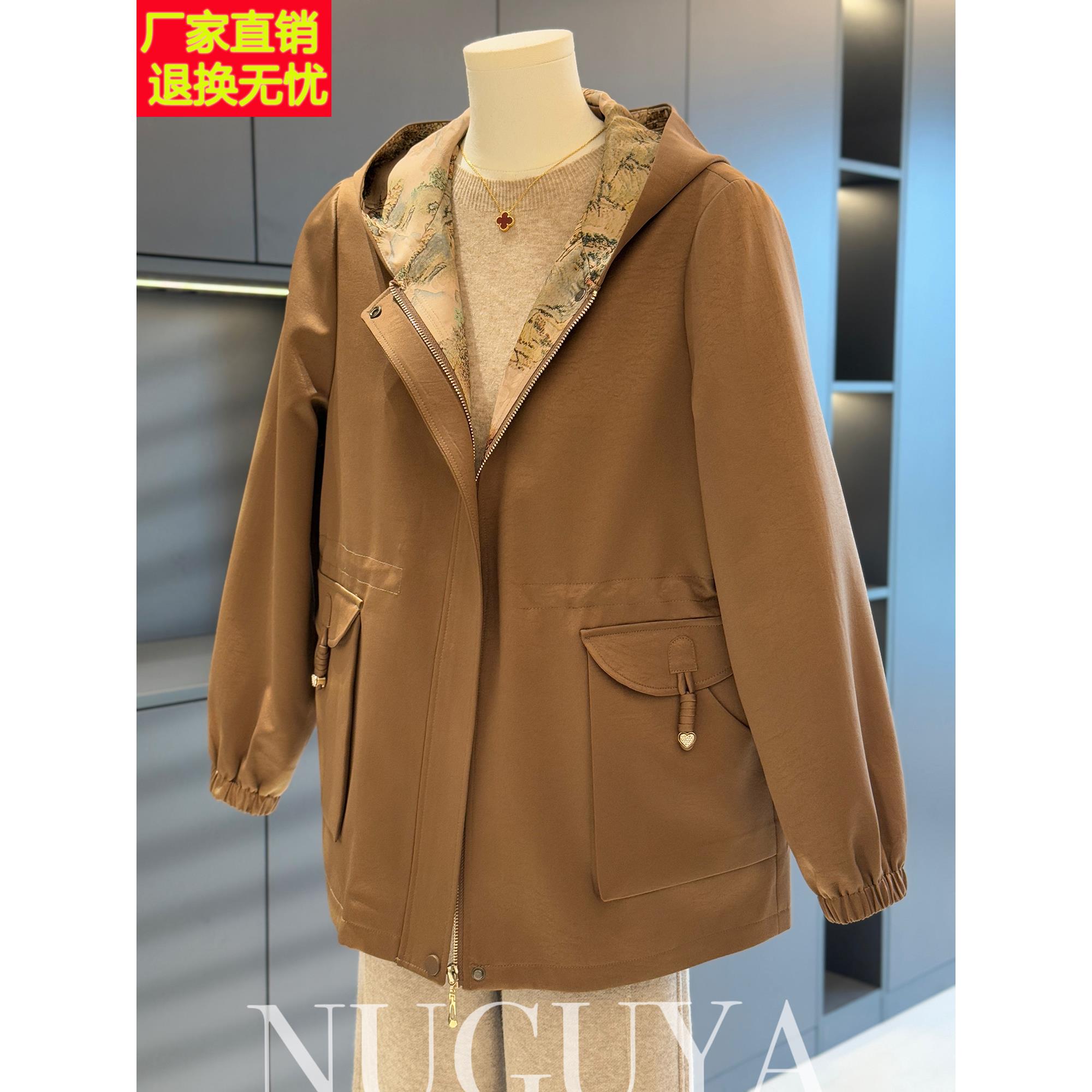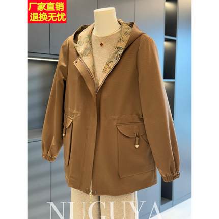 时尚休闲中老年风衣夹克衫女连帽春装新款上衣洋气显瘦妈妈装外套