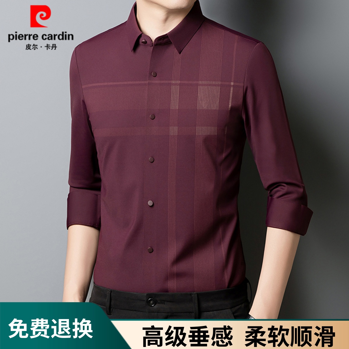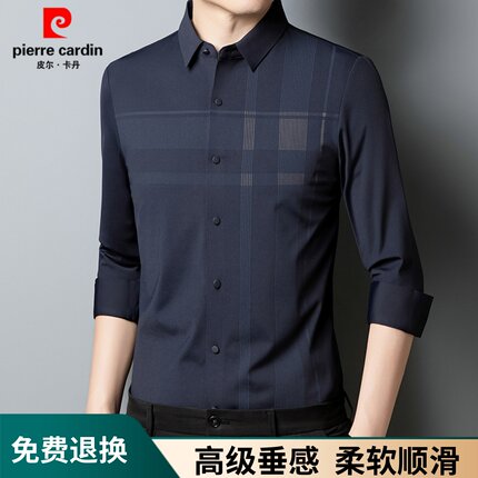 皮尔卡丹春秋季高端弹力长袖衬衫