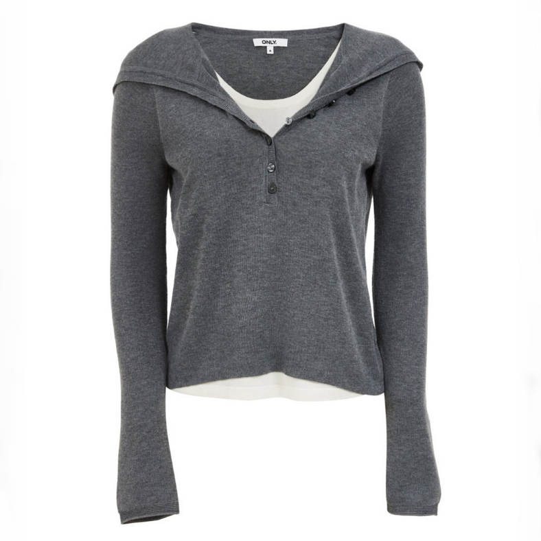 商场同款ONLY2025假两件套精致贝母扣饰连帽长袖针织衫125324002