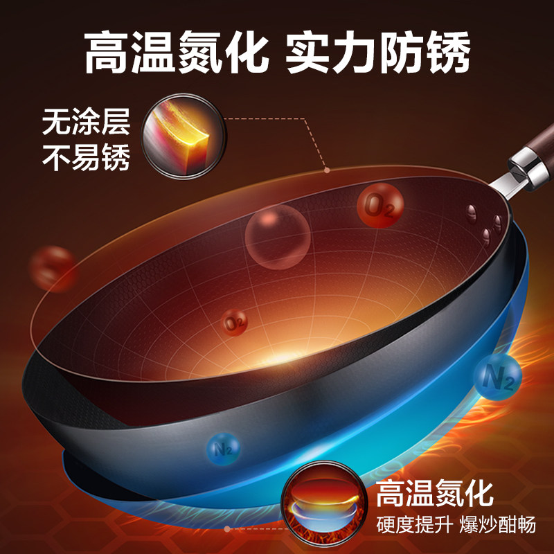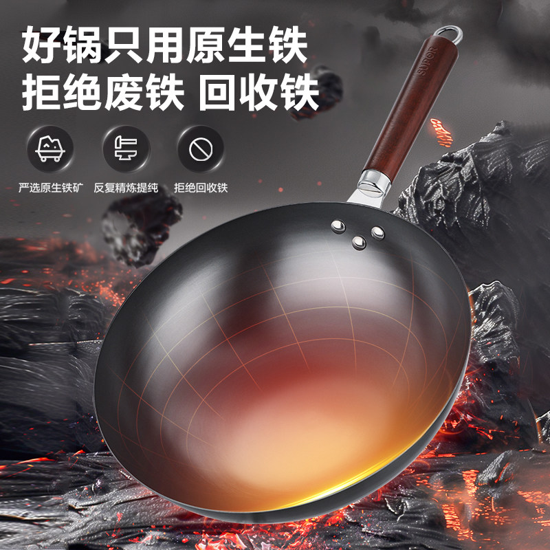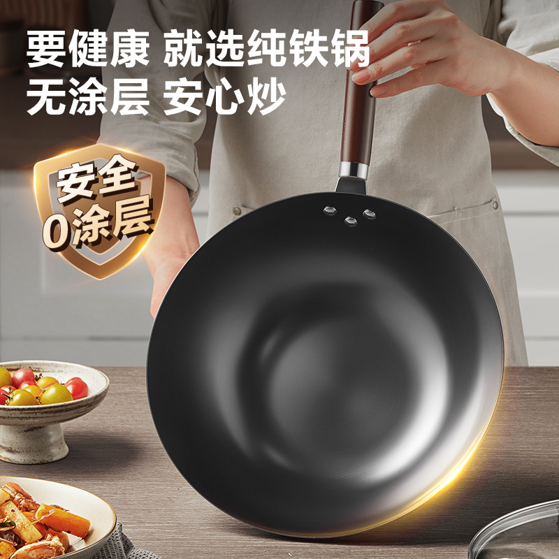 苏泊尔铁锅炒锅免开锅无涂层家用老式炒菜锅电磁炉燃气灶通用锅具