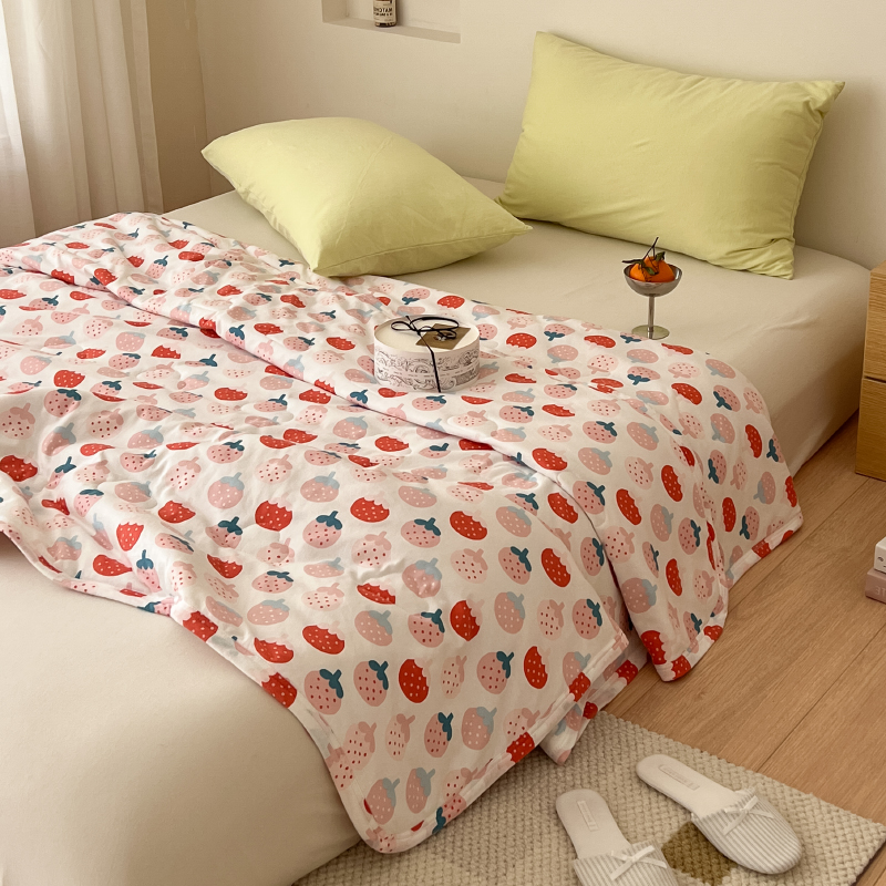 夏季软糯小草莓a类针织纯棉全棉夏凉被空调被可机洗四季春秋被子