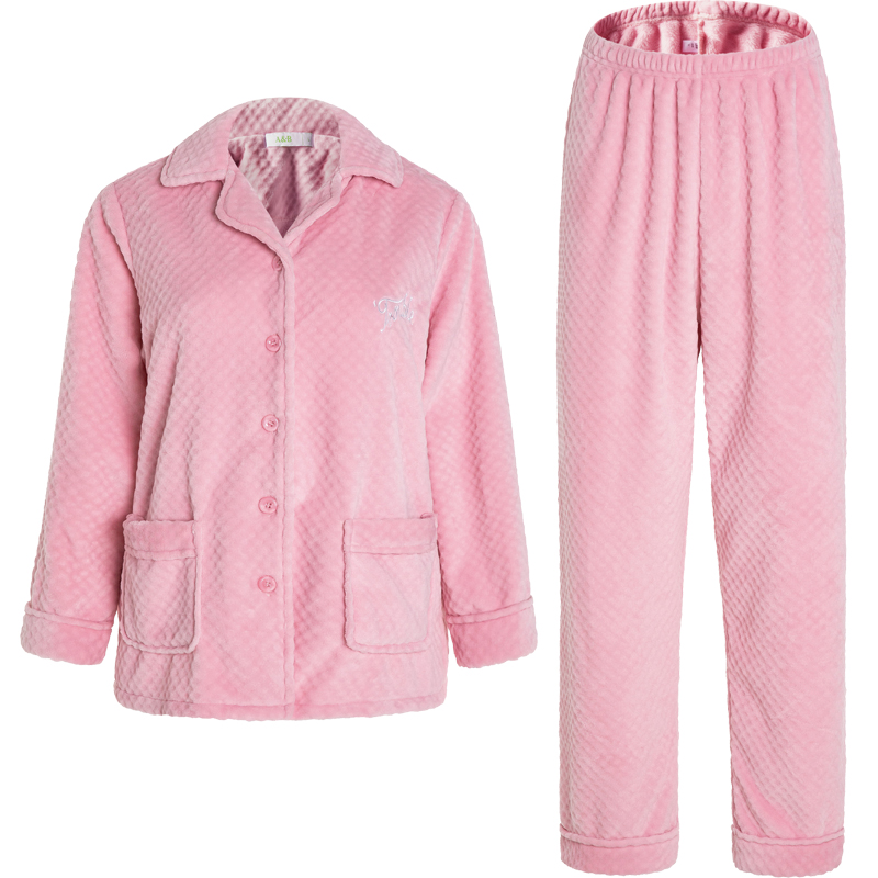 AB内衣女士秋冬睡衣法兰绒翻领开门襟加厚加绒保暖家居服套装U254