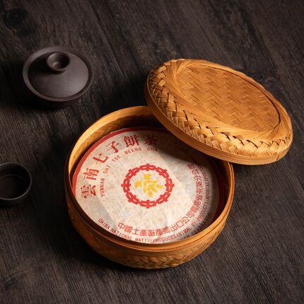 竹编带盖茶收纳盒篓烟熏七子饼茶叶罐普洱茶包装礼品盒存茶框醒