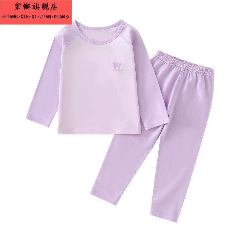 男童保暖内衣套装秋冬薄款打底女孩简约纯色秋衣秋裤儿童棉毛衫秋