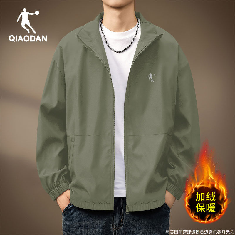乔丹加厚保暖运动风衣男秋冬季新款黑色防泼水冲锋衣立领工装夹克