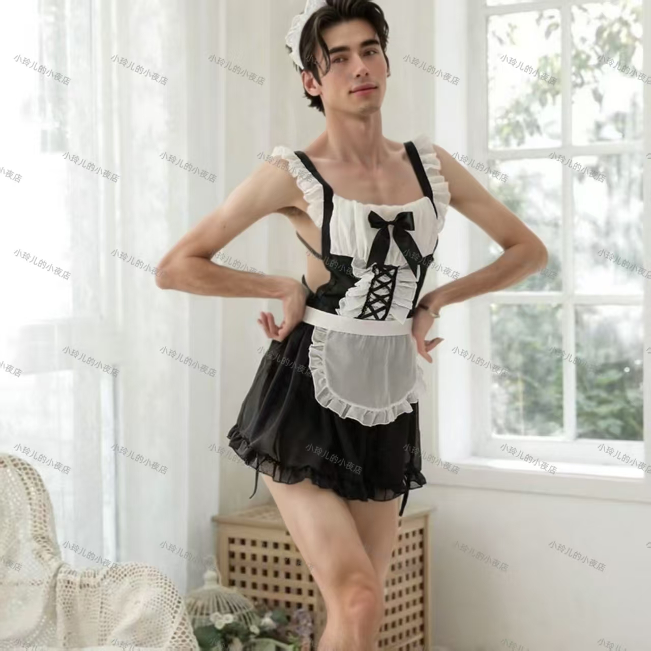 四爱男仆装大码男同睡裙伪娘趣味内衣gay情趣衣服男M变装四爱女装