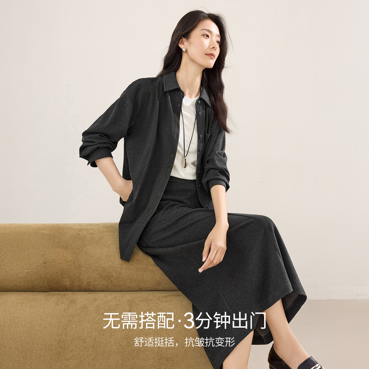 【博主同款】IHIMI海谧高智针织外套半裙两件套女秋时尚衬衫裙套