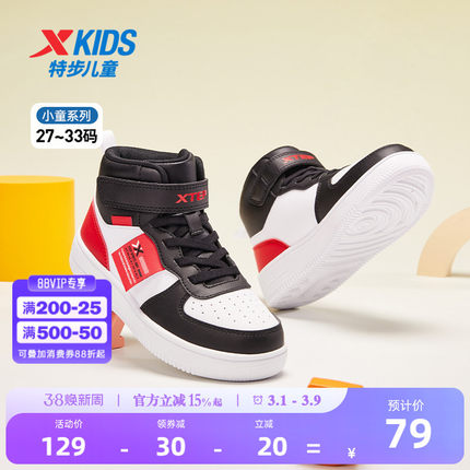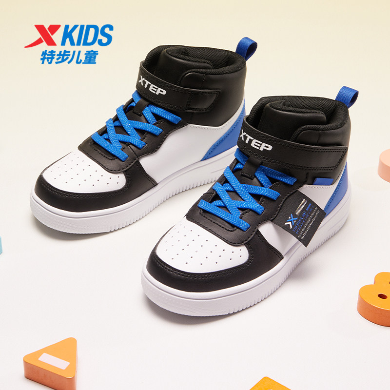 特步童鞋2026年秋春季新款小童经典高帮板鞋儿童魔术贴休闲运动鞋