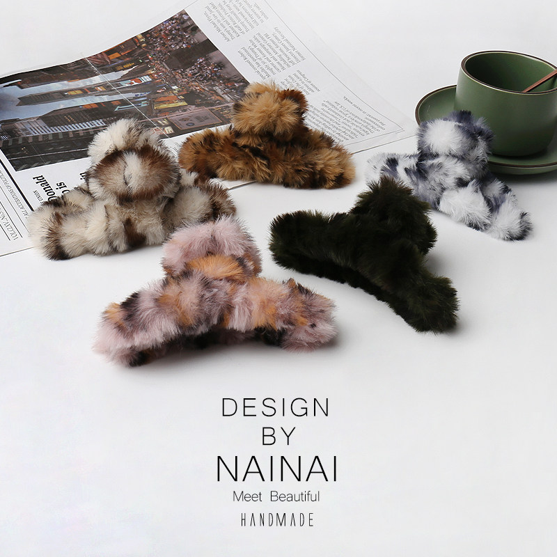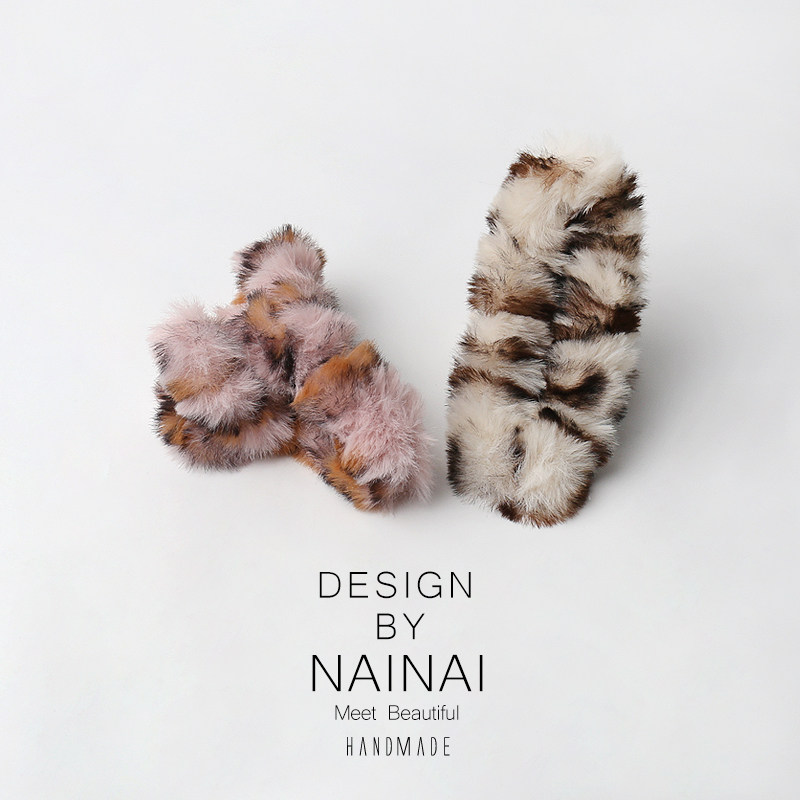 秋冬气质毛绒豹纹条抓夹甜美日韩后脑勺发抓鲨鱼夹少女心发饰头品