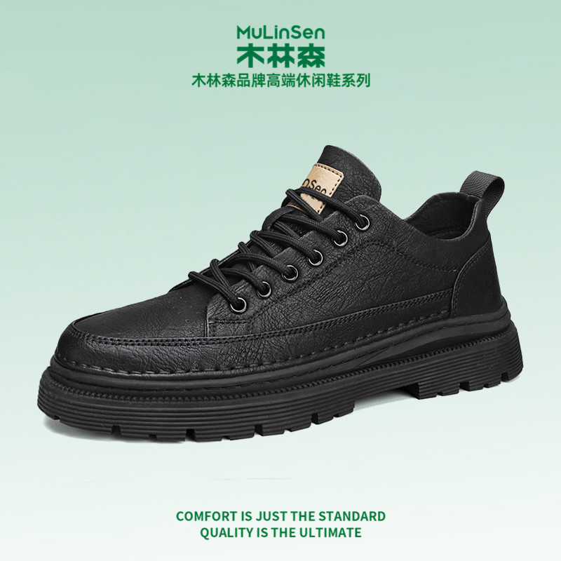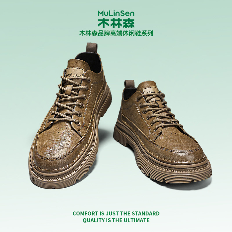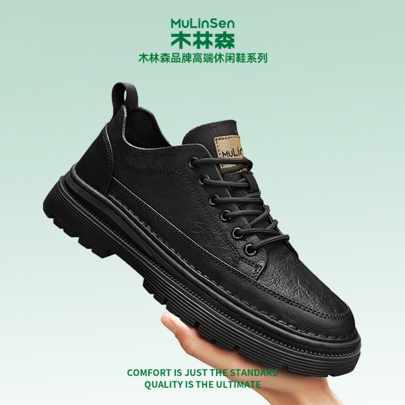 木林森皮鞋男春季运动休闲板鞋商务正装低帮厚底增高工装马丁短靴