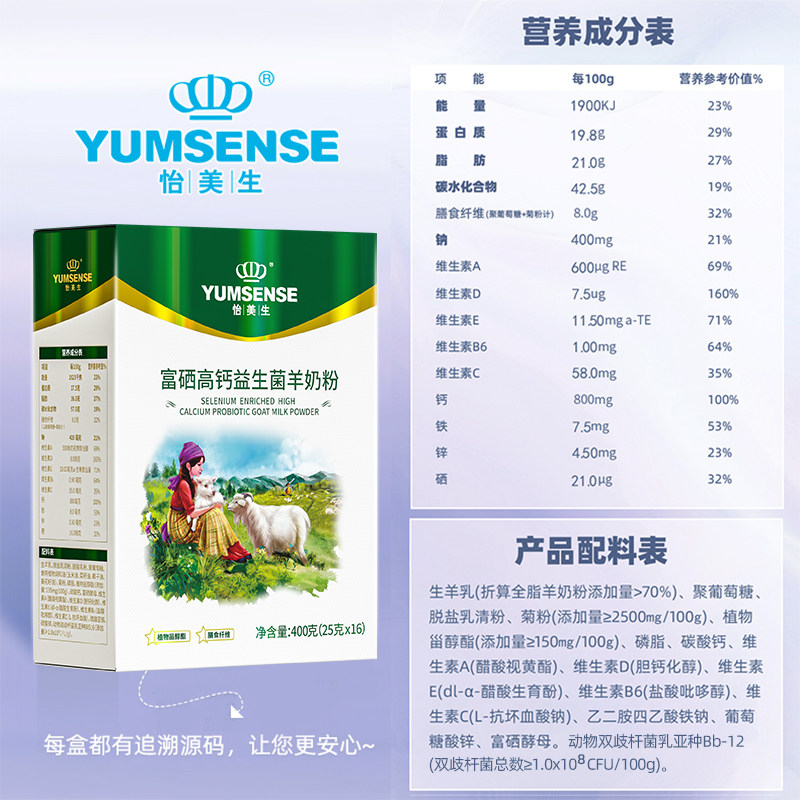 怡美生高钙富硒益生菌羊奶粉