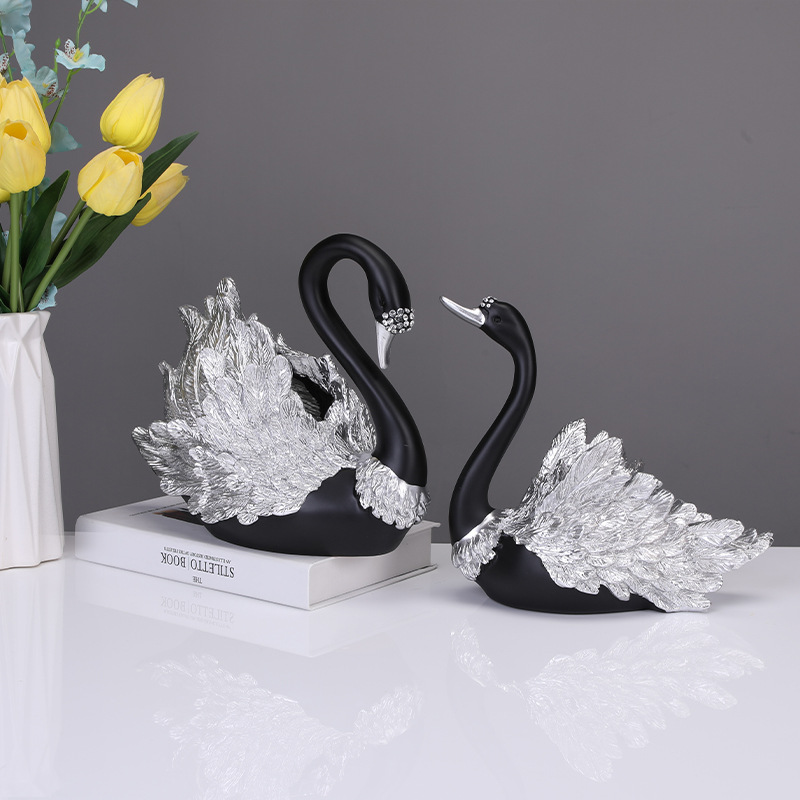 北欧现代轻奢美式家居客厅电视酒柜装饰品情侣天鹅摆件一对工艺品