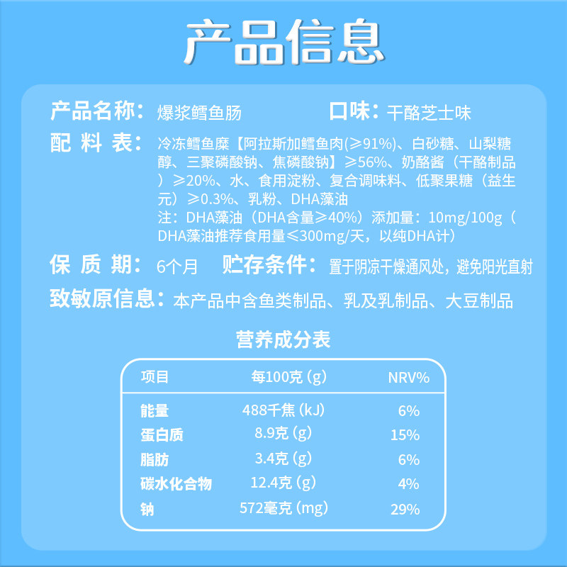 盐津铺子爆浆流心鳕鱼肠DHA藻油火腿妙可蓝多奶酪酱儿童零食早餐
