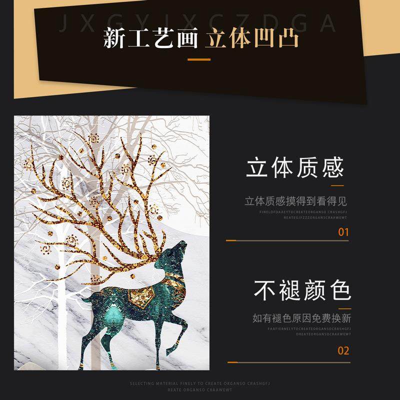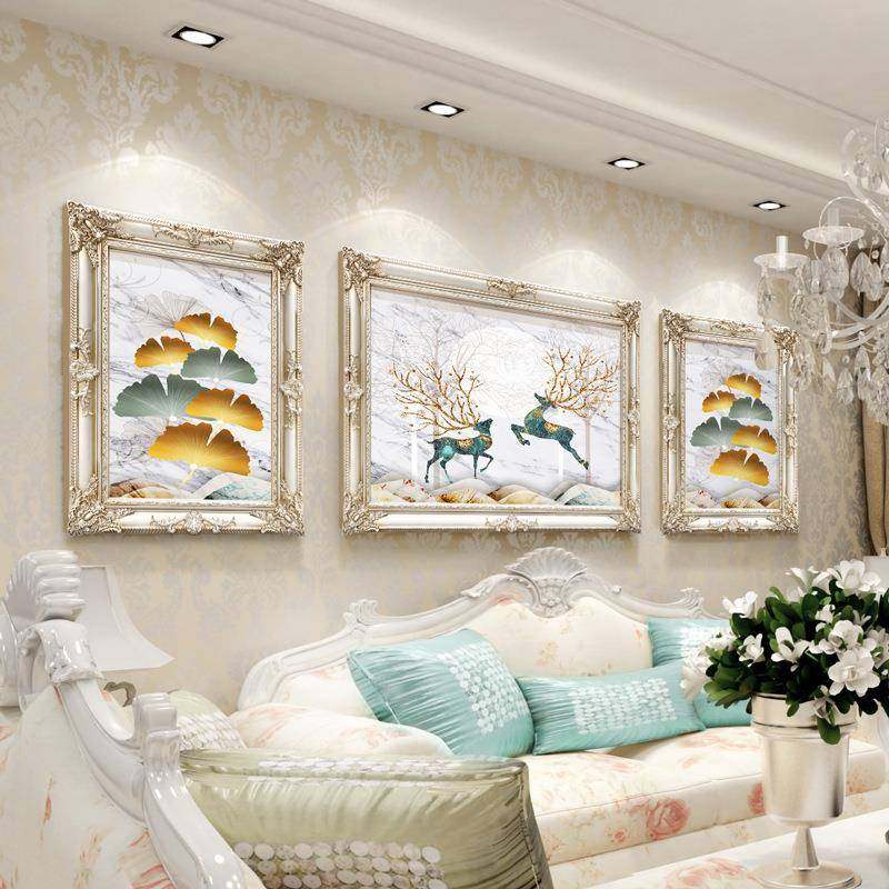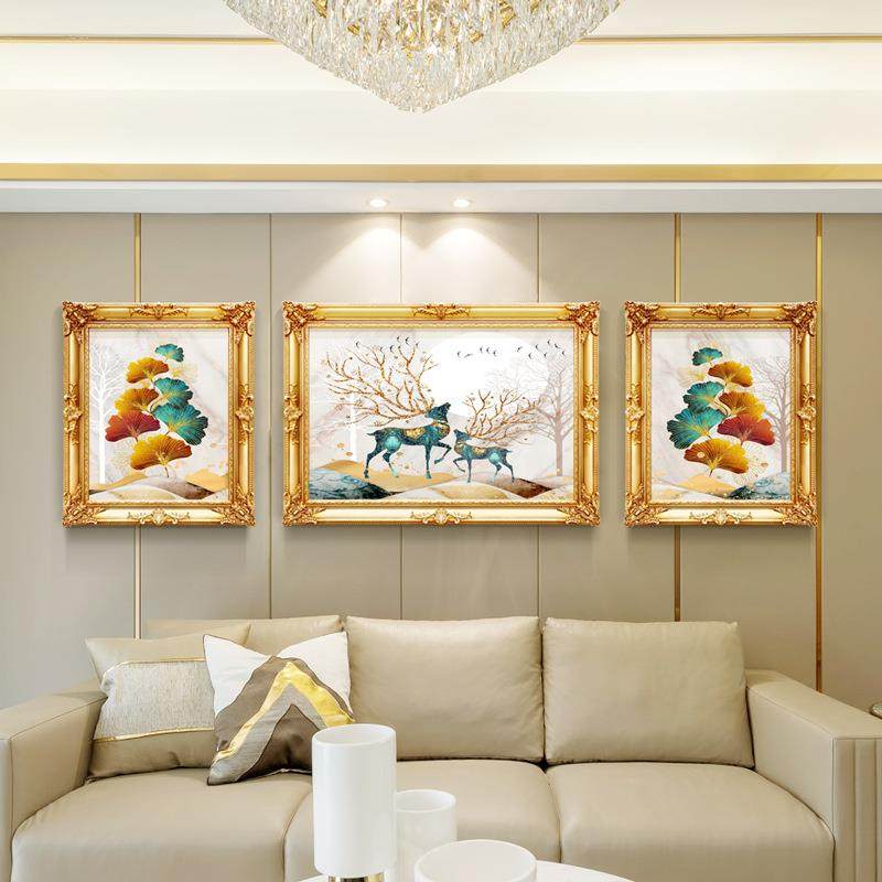 客厅沙发背景挂画简欧轻奢墙面组合画麋鹿装饰画家用欧式三联画