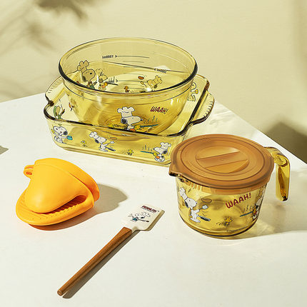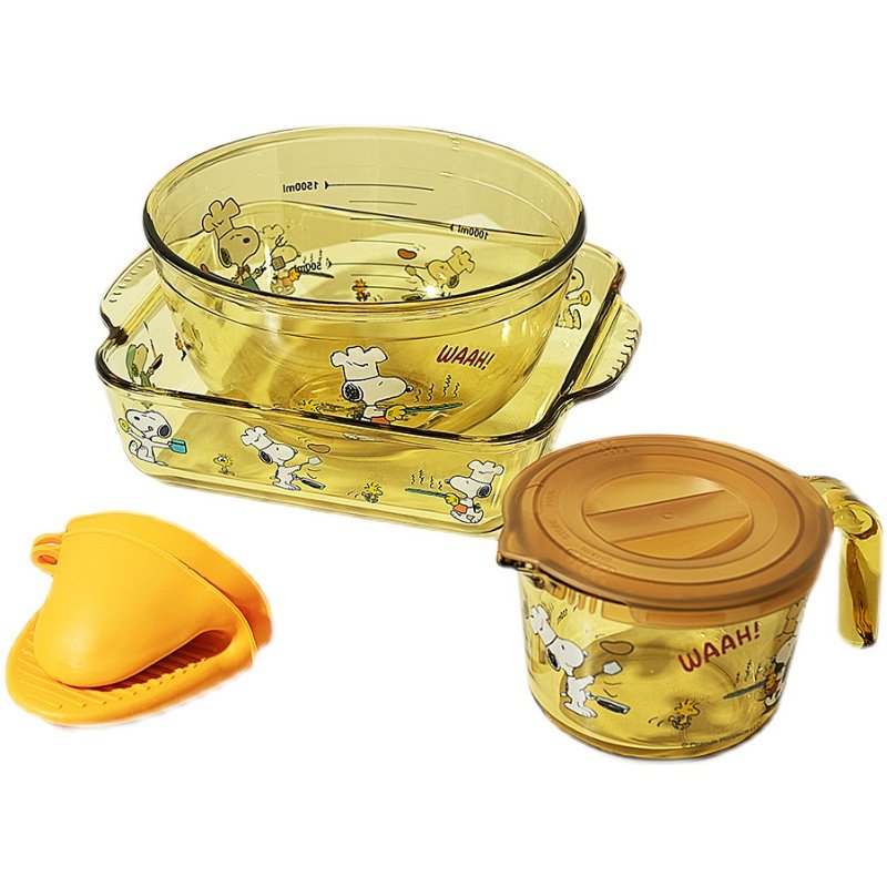 史努比联名款家居日用碗盘玻璃餐具套装碗高颜值耐热烤盘汤碗量杯