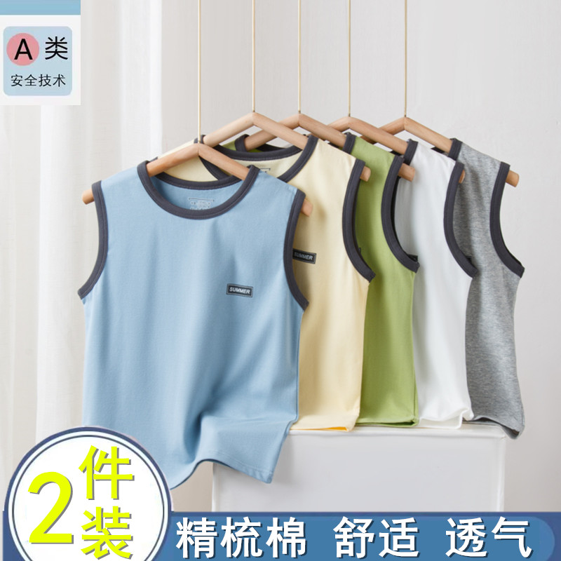 儿童背心男童纯棉内穿春夏装小男孩中大童跨栏工字打底衫内衣四季