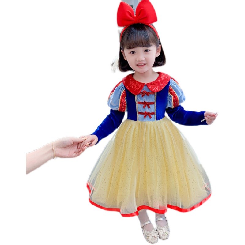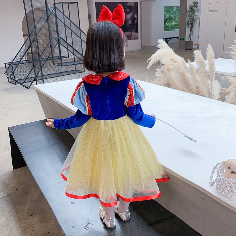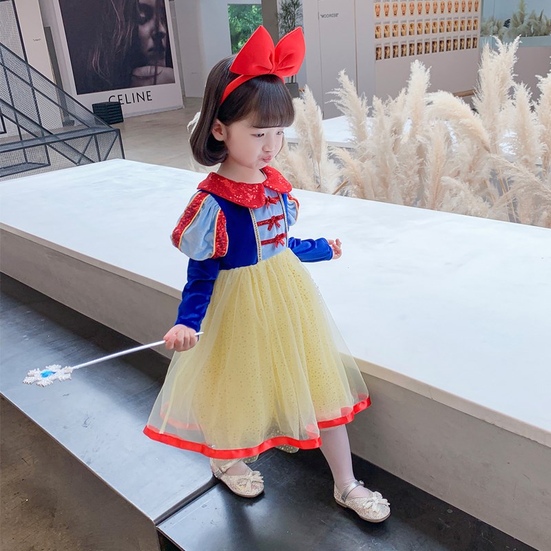 新款中小女童白雪公主长袖网纱蓬蓬裙小女孩洋气修身娃娃领连衣裙