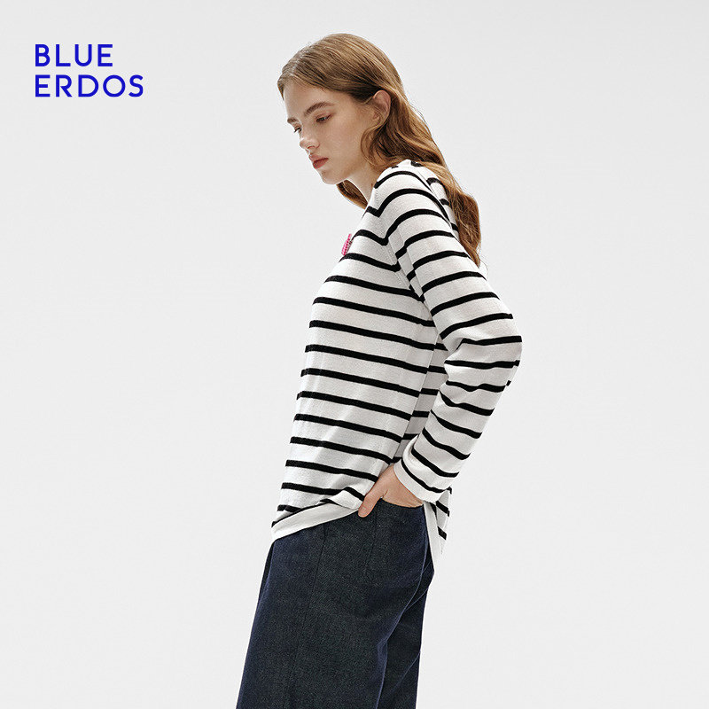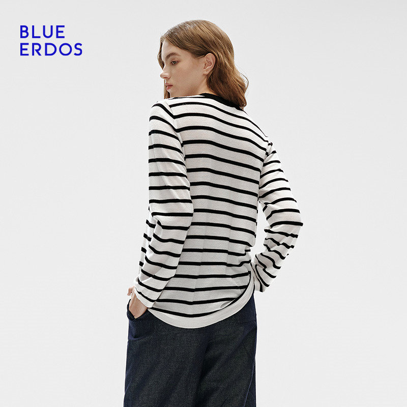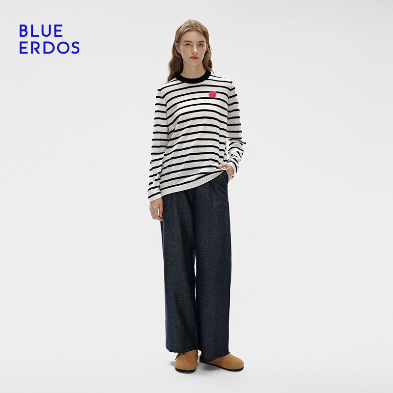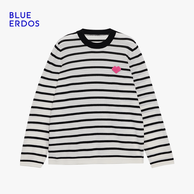 【100%绵羊毛】BLUE ERDOS春爱心胸针航海风条纹针织衫B555D0004