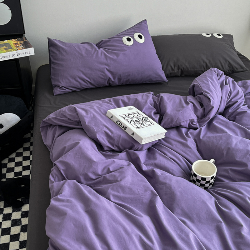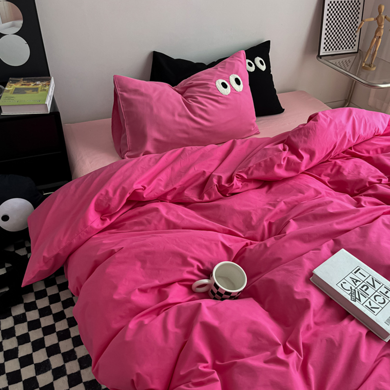 混搭纯色水洗棉四件套褶皱被套非全棉床单被罩小清新宿舍床品
