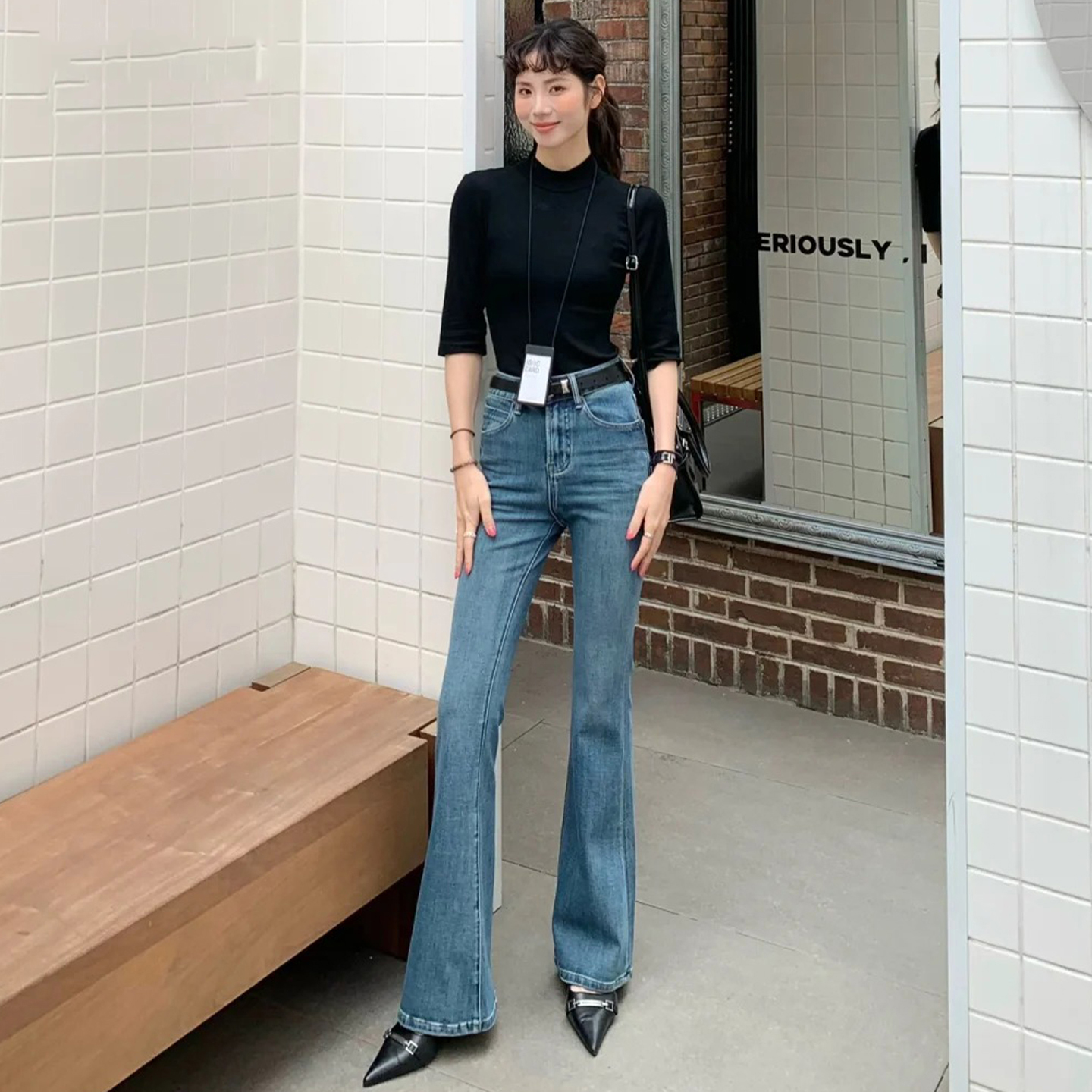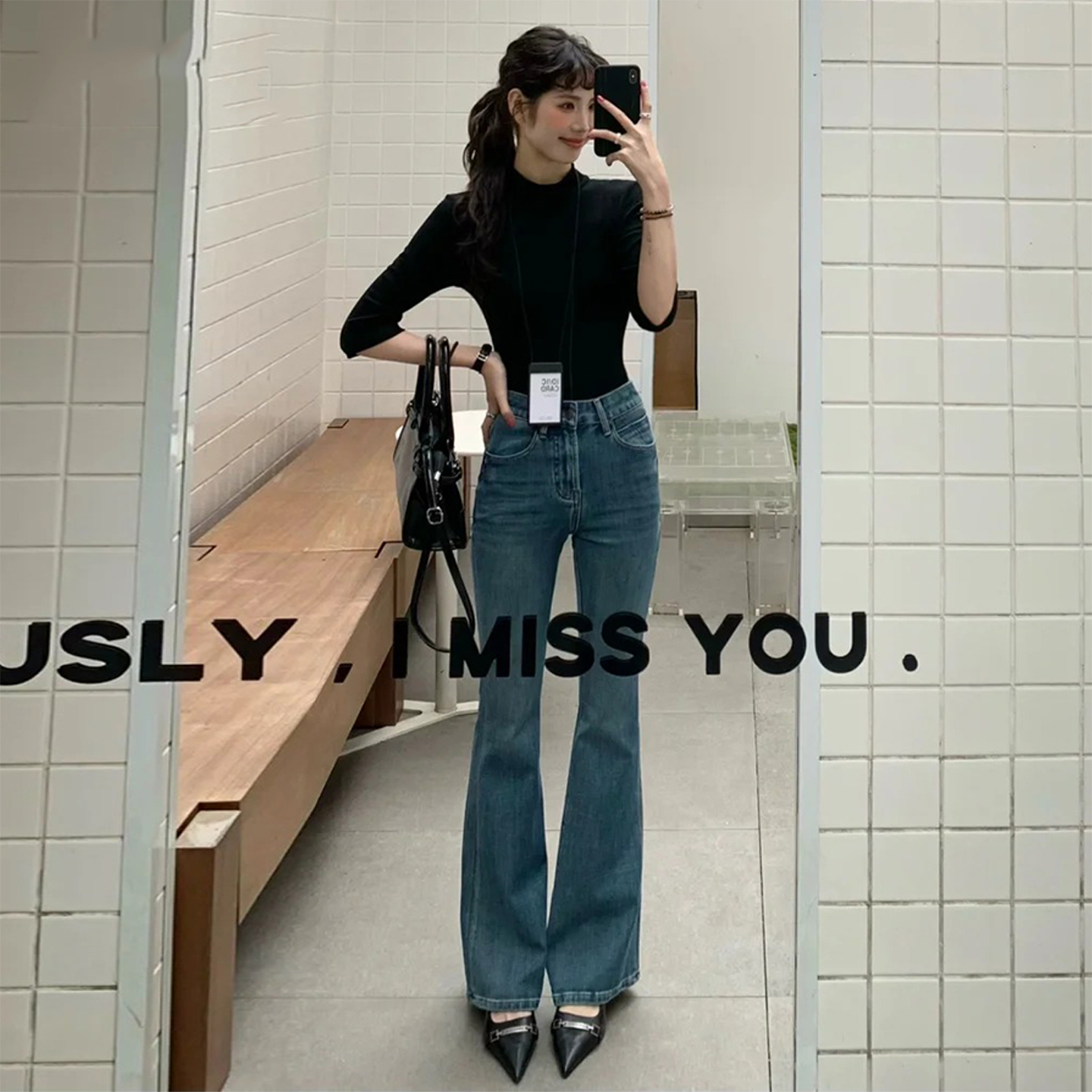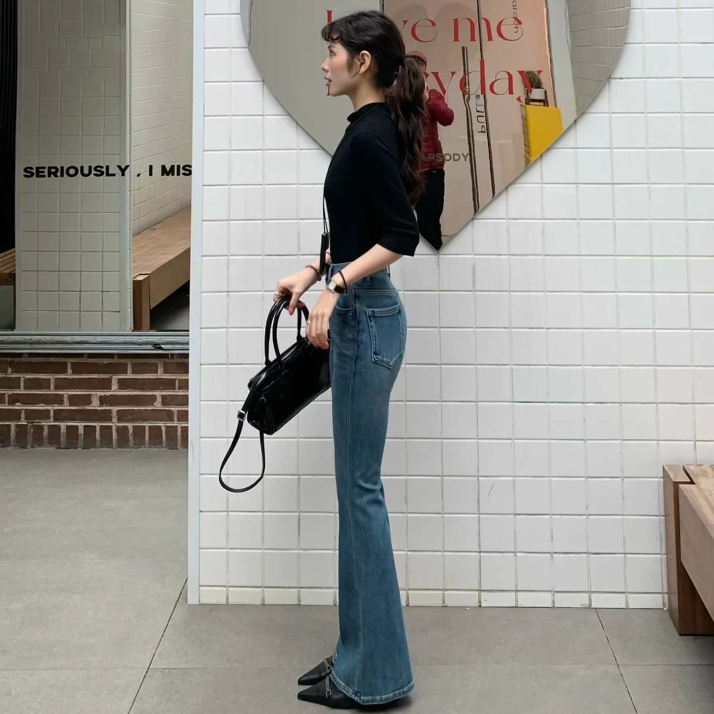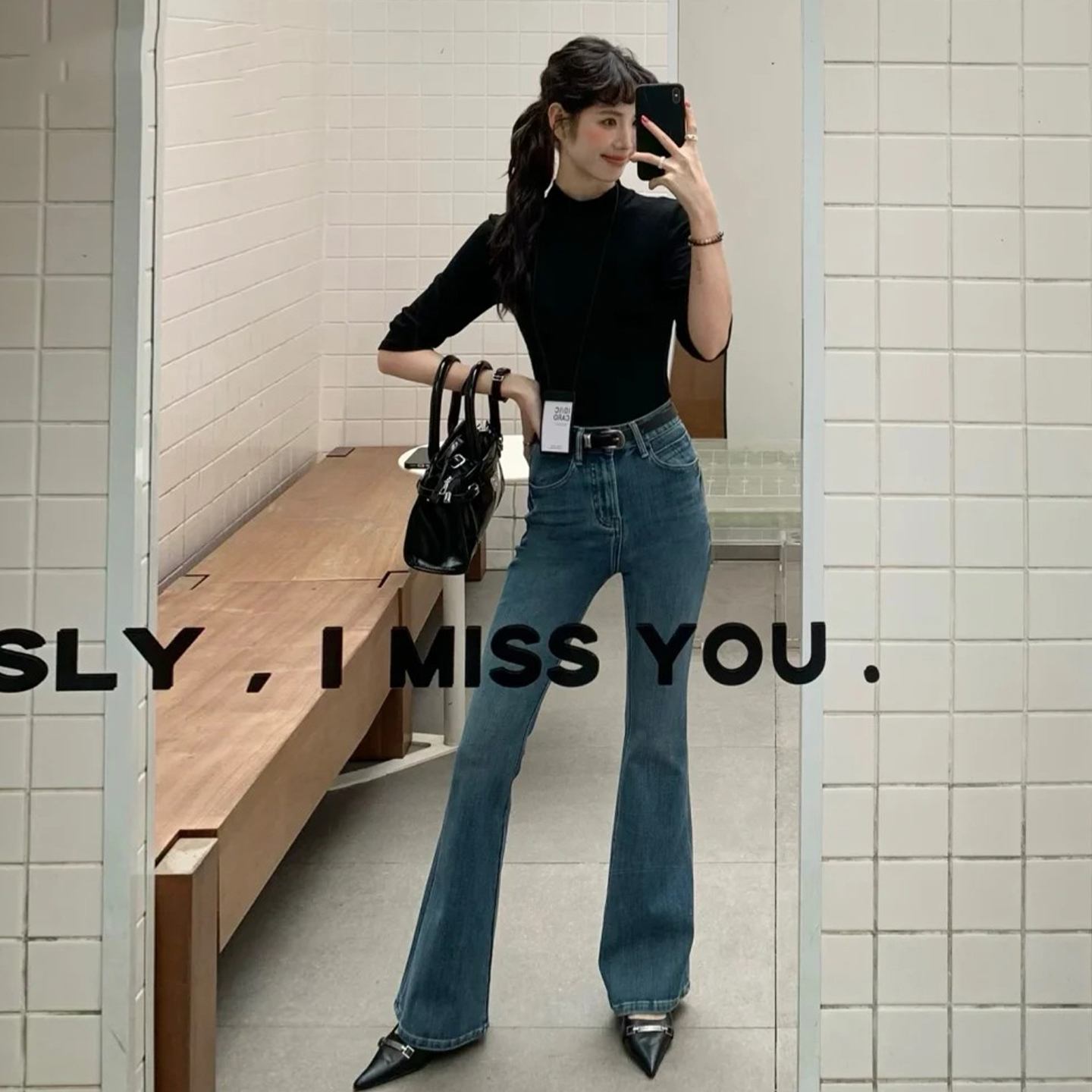 复古微喇牛仔裤女秋季2025年新款高腰弹力显瘦小个子马蹄喇叭裤子