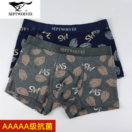 七匹狼弹力棉内裤男中腰抗菌纯棉抗菌印花男士平角内裤青年时尚印