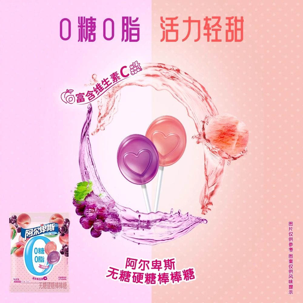 阿尔卑斯无糖棒棒糖96g0脂0糖富含维C葡萄味白桃味水果味硬糖零食