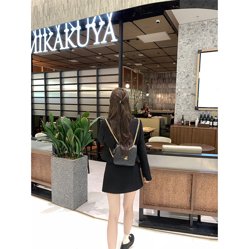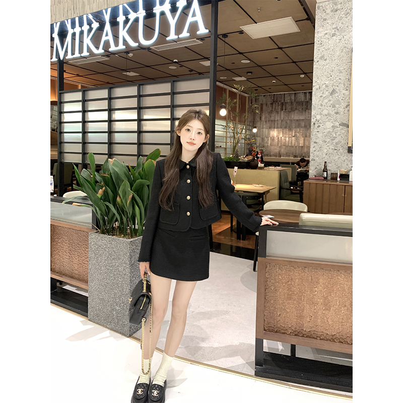 珍珍家粗纺编织娃娃领小香套装高级感温柔翻领短款外套半裙两件套