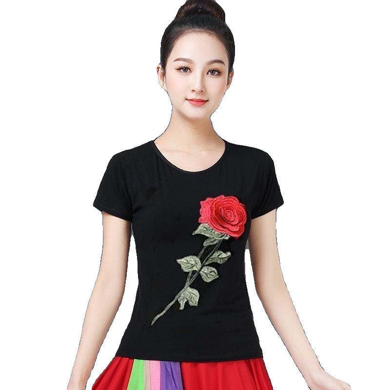 新款广场舞服装新款上衣莫代尔春夏季短袖跳舞蹈的衣服练功显瘦女