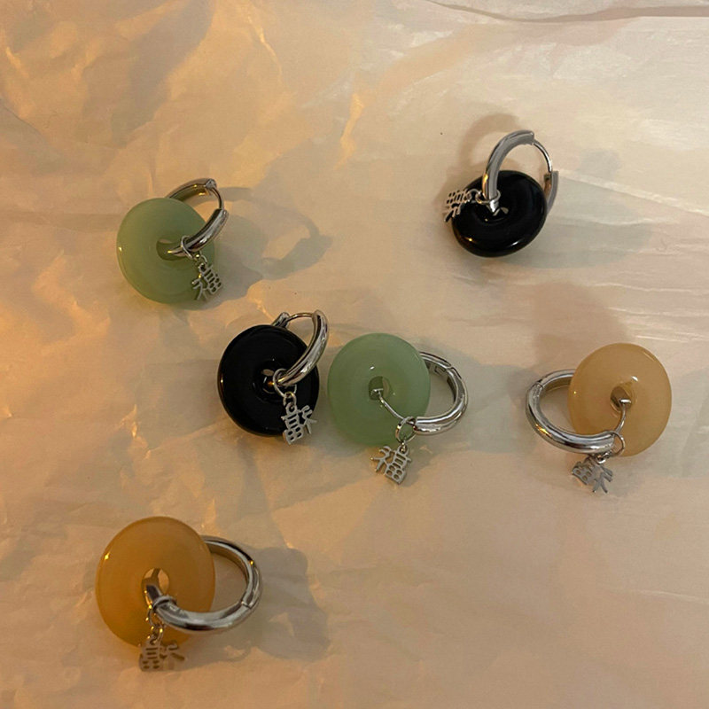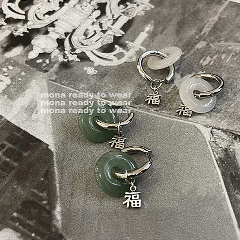 MONA张绮贤同款福字玉石耳环小众设计高级感新中式国潮古风耳饰女