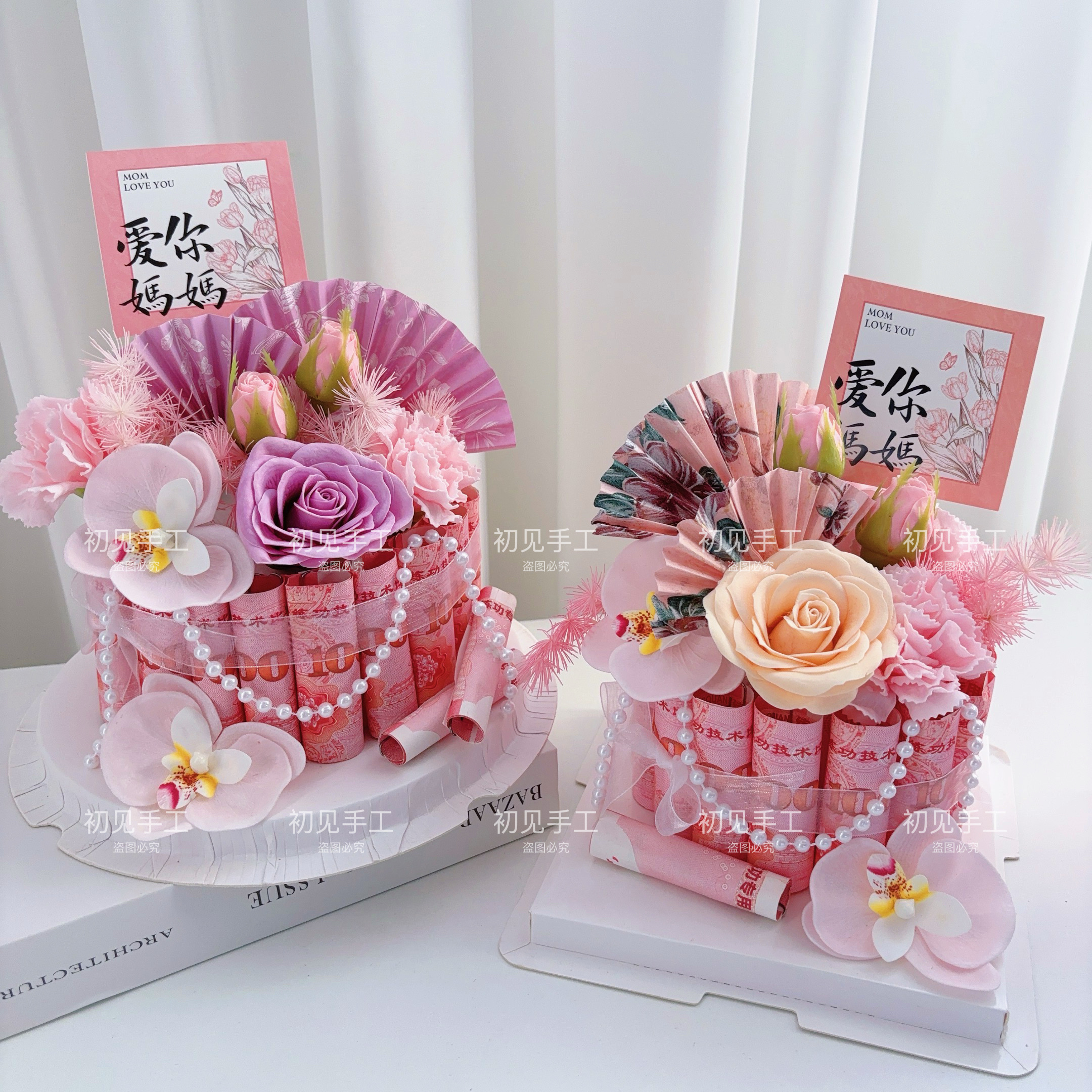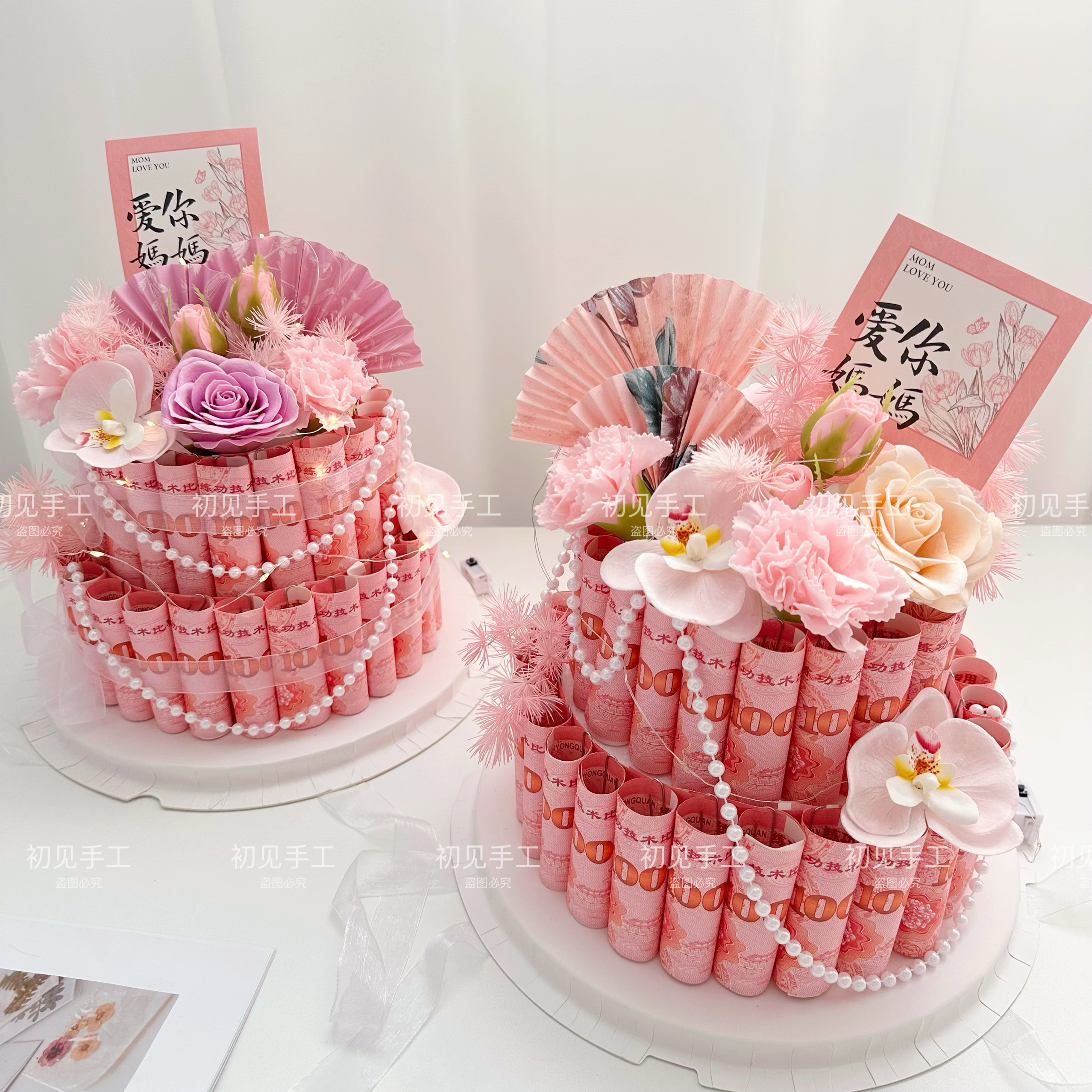 母亲节创意diy有钱花生日蛋糕材料新中式装饰节日礼物送长辈父母