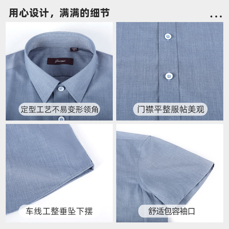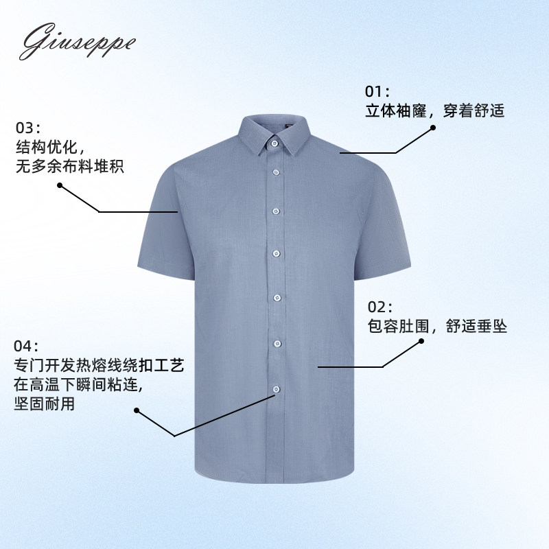 乔治白夏季薄款男士短袖衬衫尖领微弹衬衣牛仔蓝休闲修身上衣