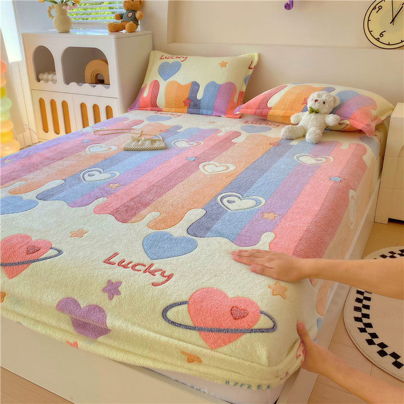 冬季雪花绒床笠单件加绒全包围可拆洗席梦思床垫保护套法兰绒床笠