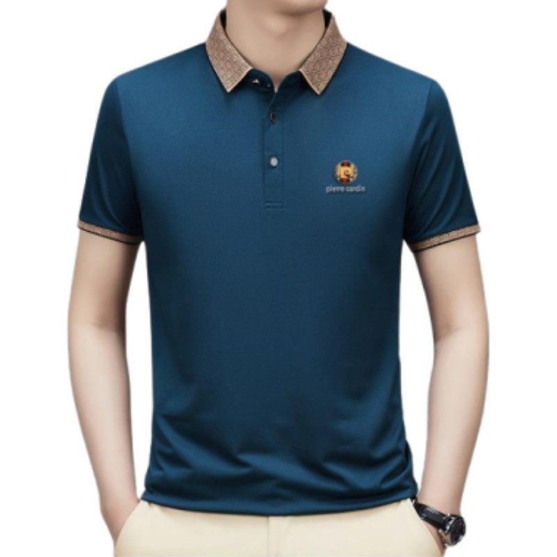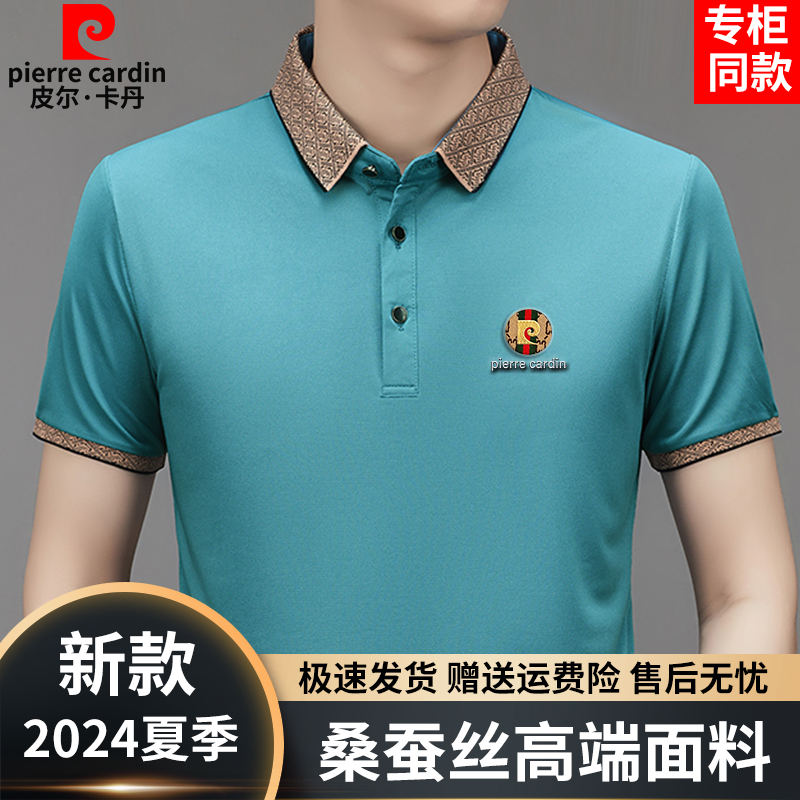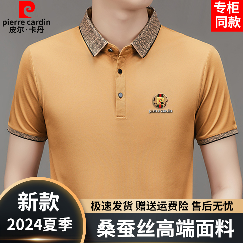 皮尔卡丹桑蚕丝短袖t恤男夏季半袖翻领POLO衫中年男装官方旗舰店