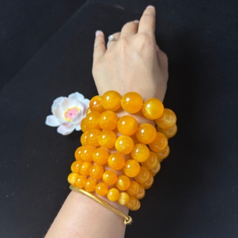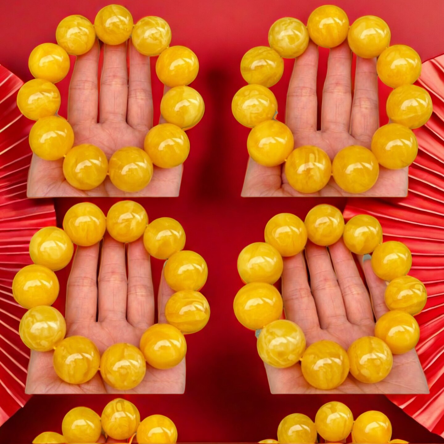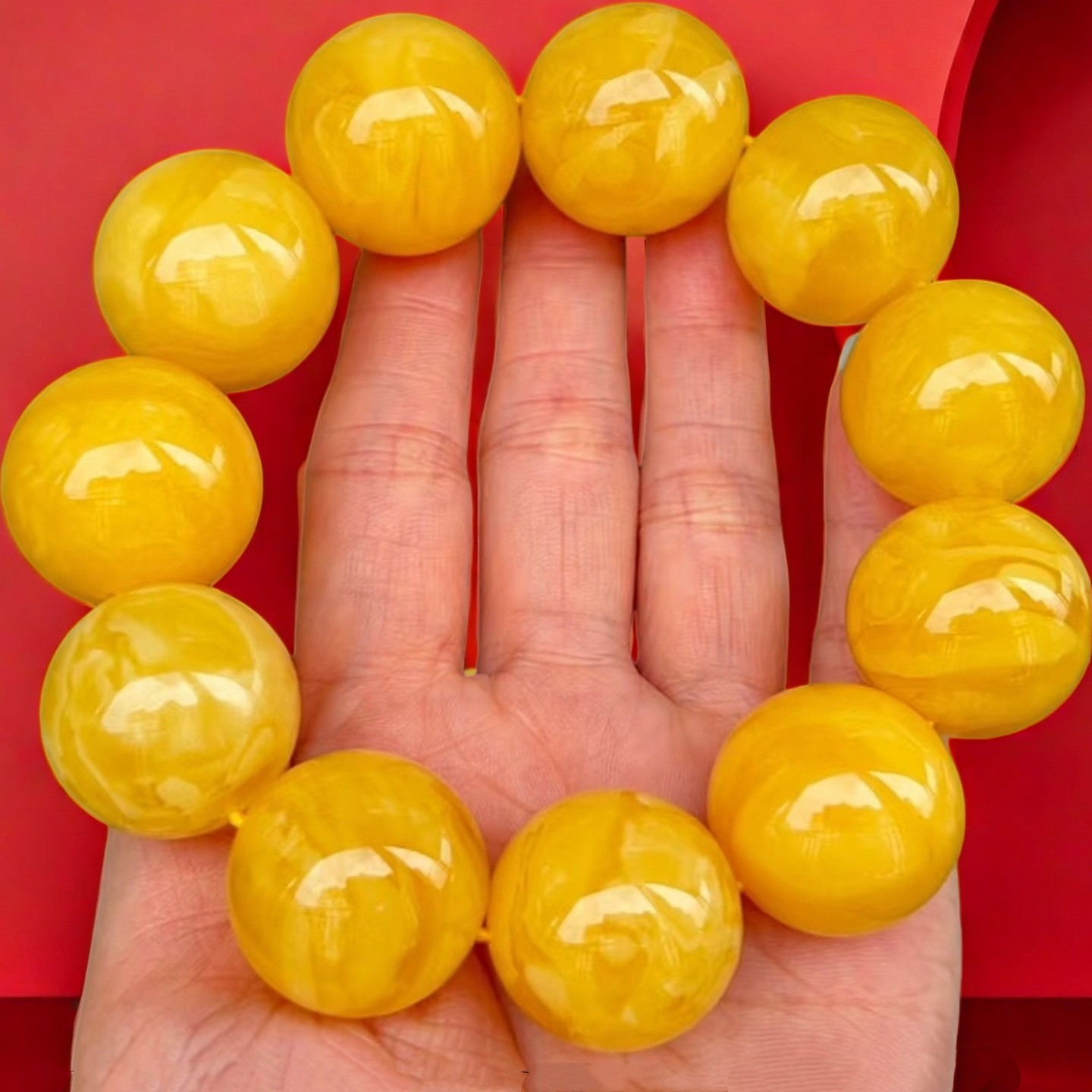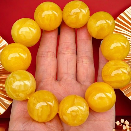 天然蜜蜡手串男款单圈鸡油黄老蜜蜡琥珀女士白花手链佛珠圆珠配饰